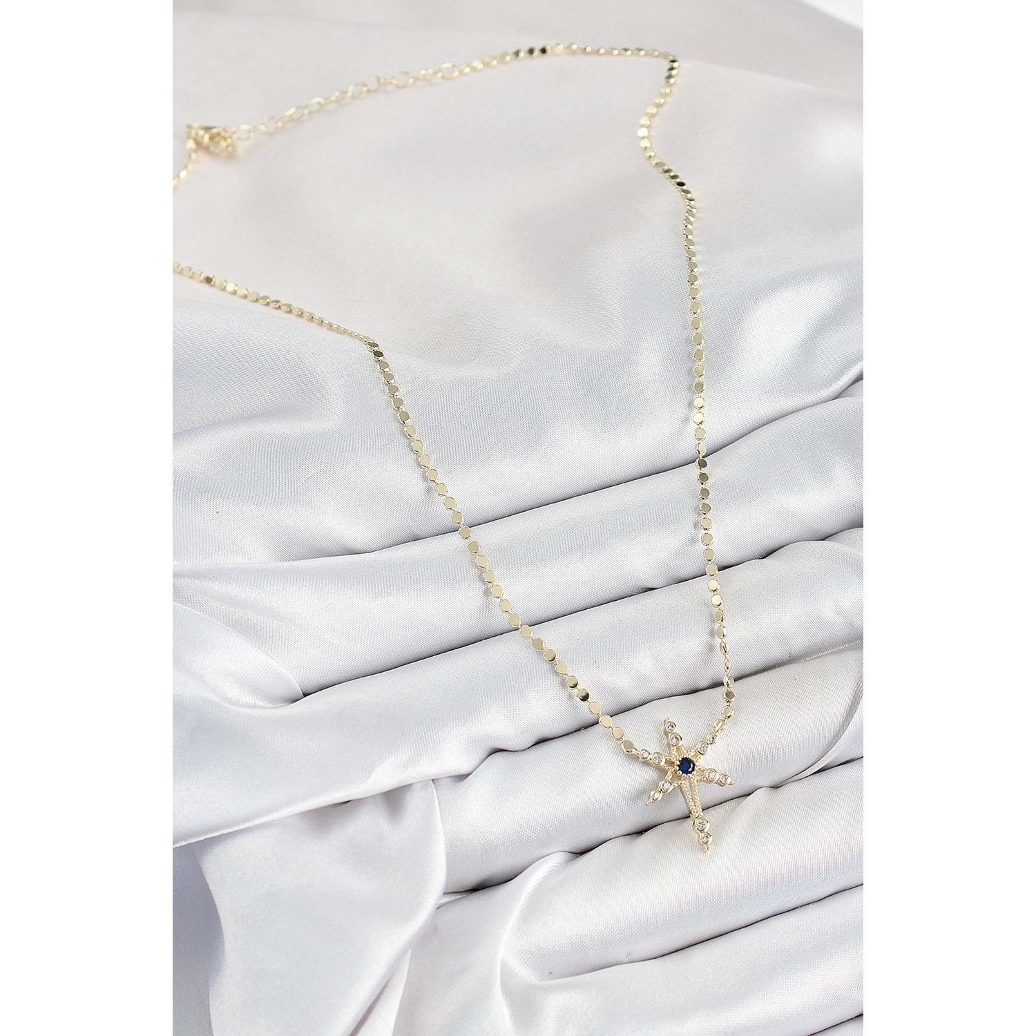 Pirinç Zirkon Taşlı Kutup Yıldızı Model Ezme Zincir Gold Renk Kadın Kolye