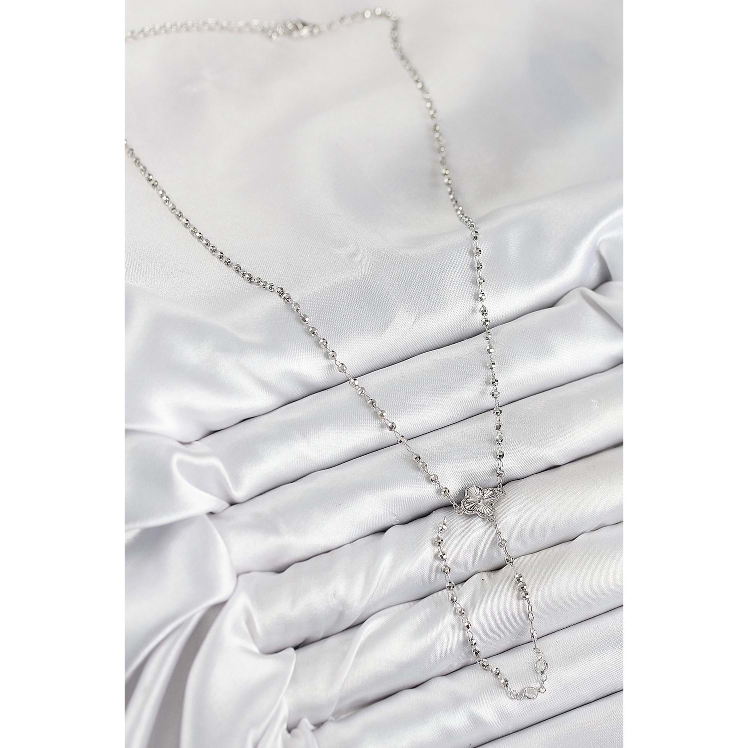 Pirinç Zirkon Taşlı Yonca Model Gümüş Renk Kadın Y Kolye