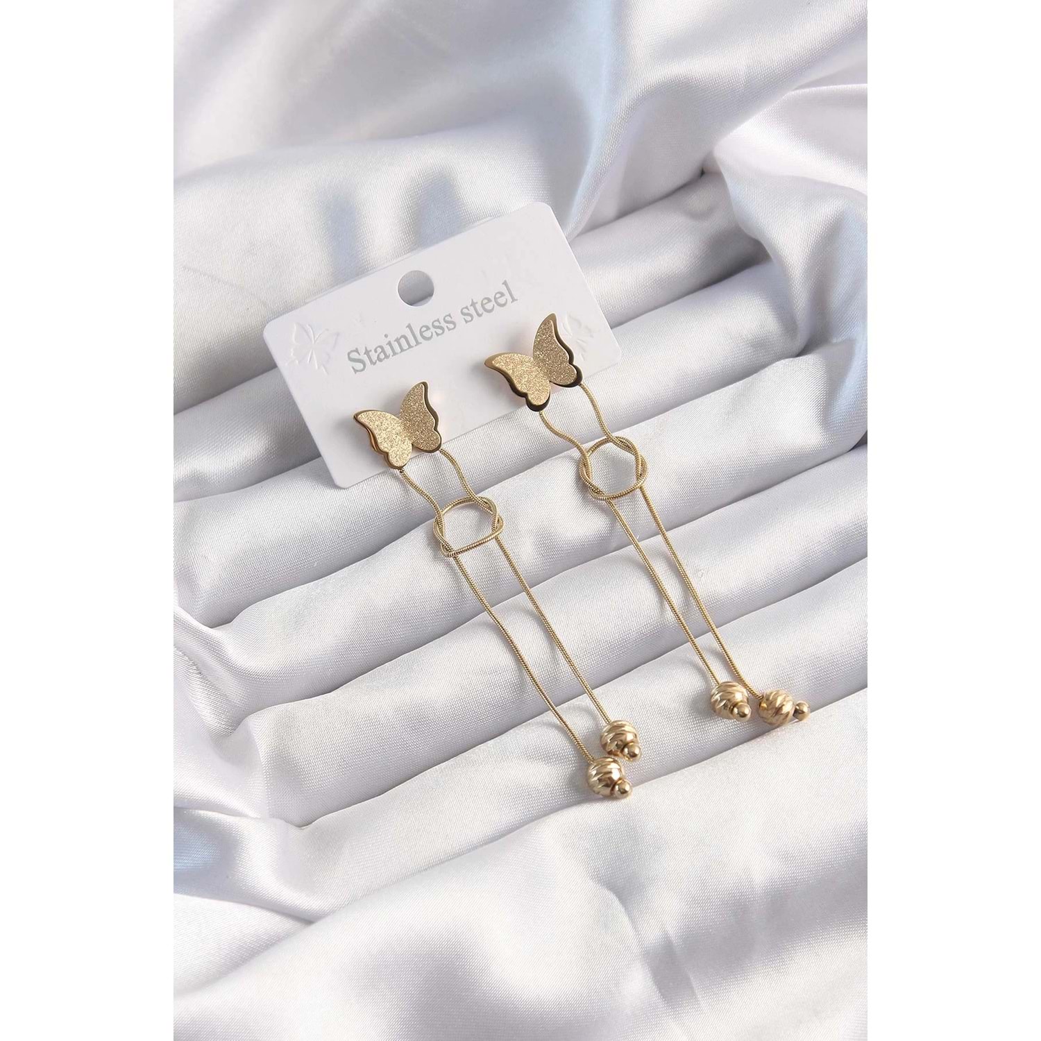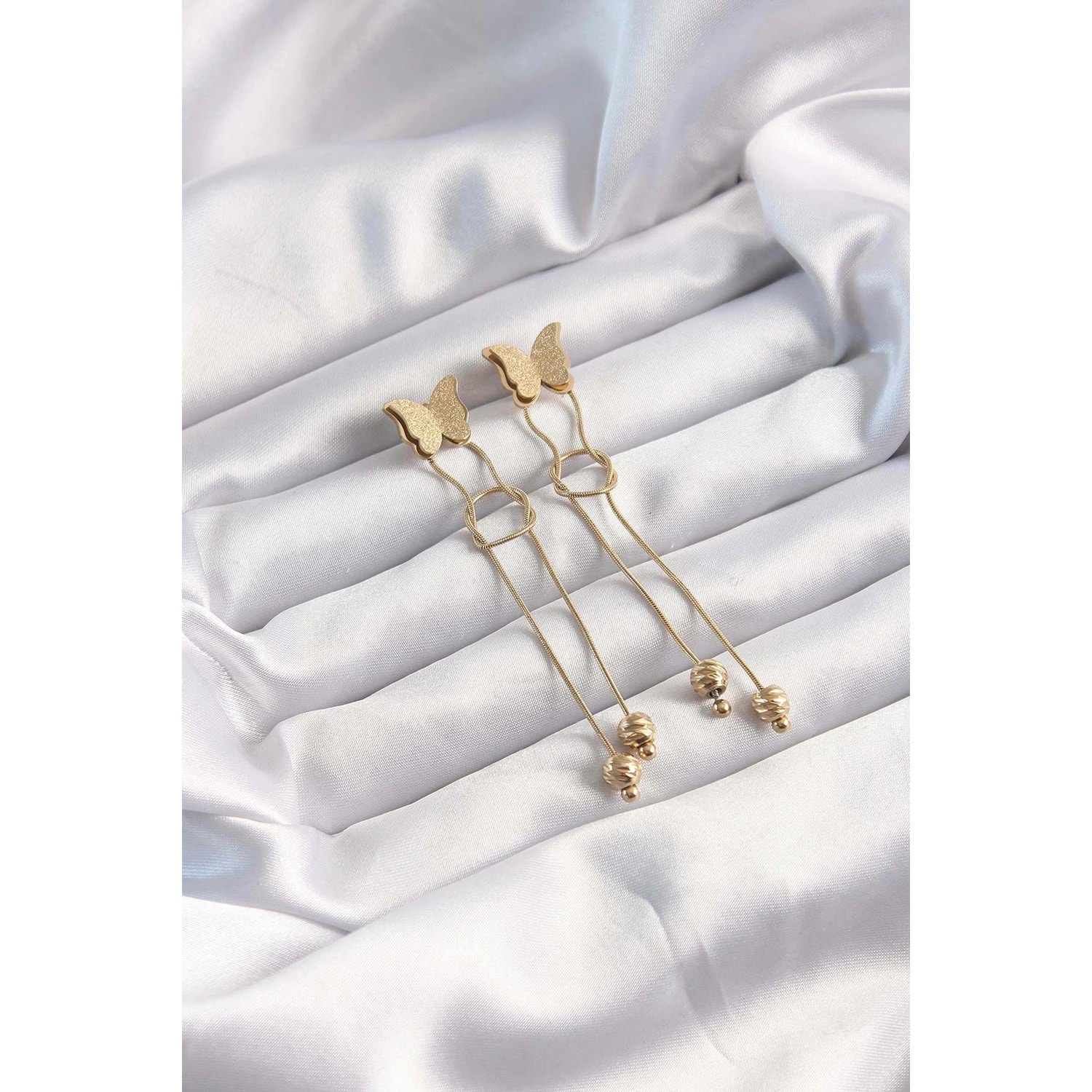 316L Çelik Altın Renk Sallantılı Düğüm Model Kelebek Küpe