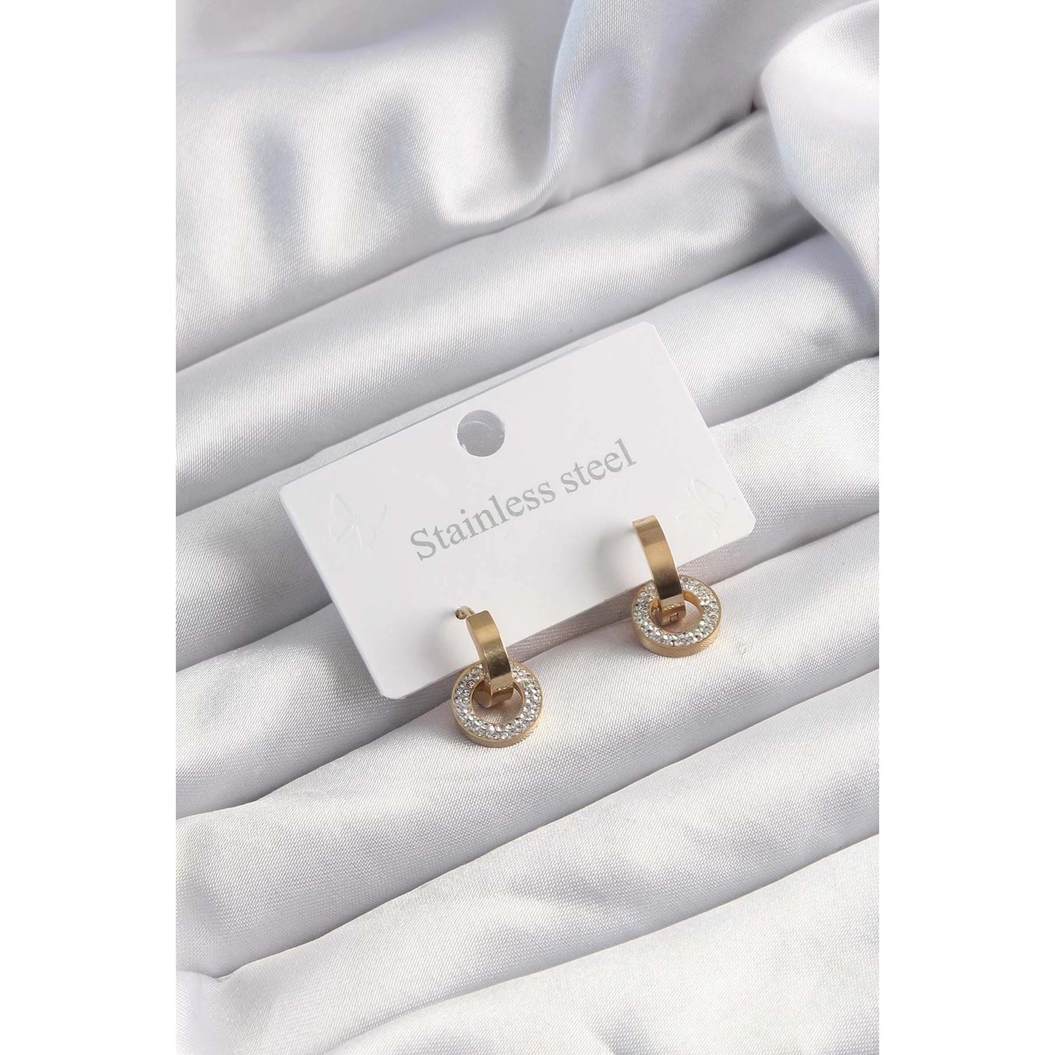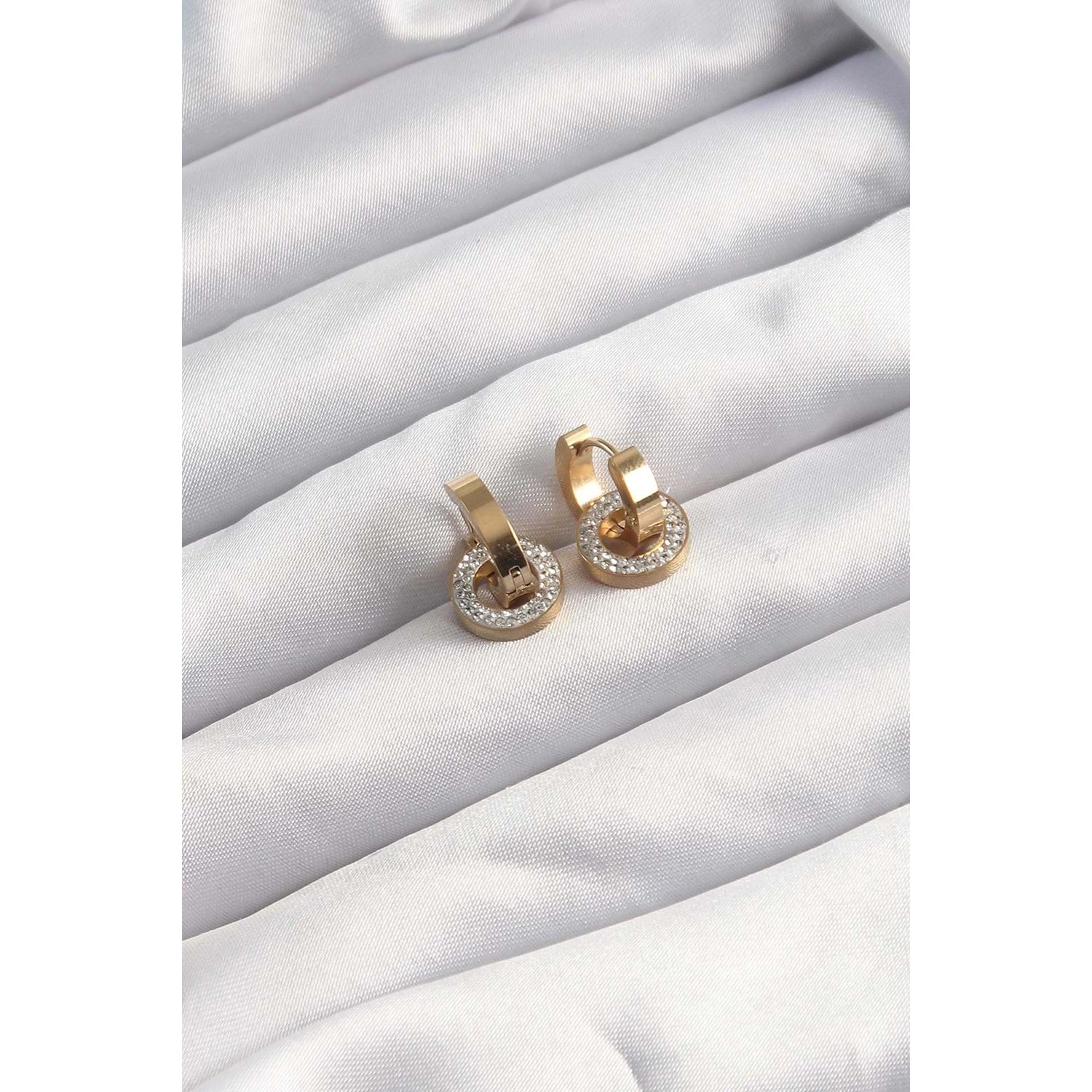 316L Çelik Altın Renk Zirkon Taşlı Halka Model Küpe