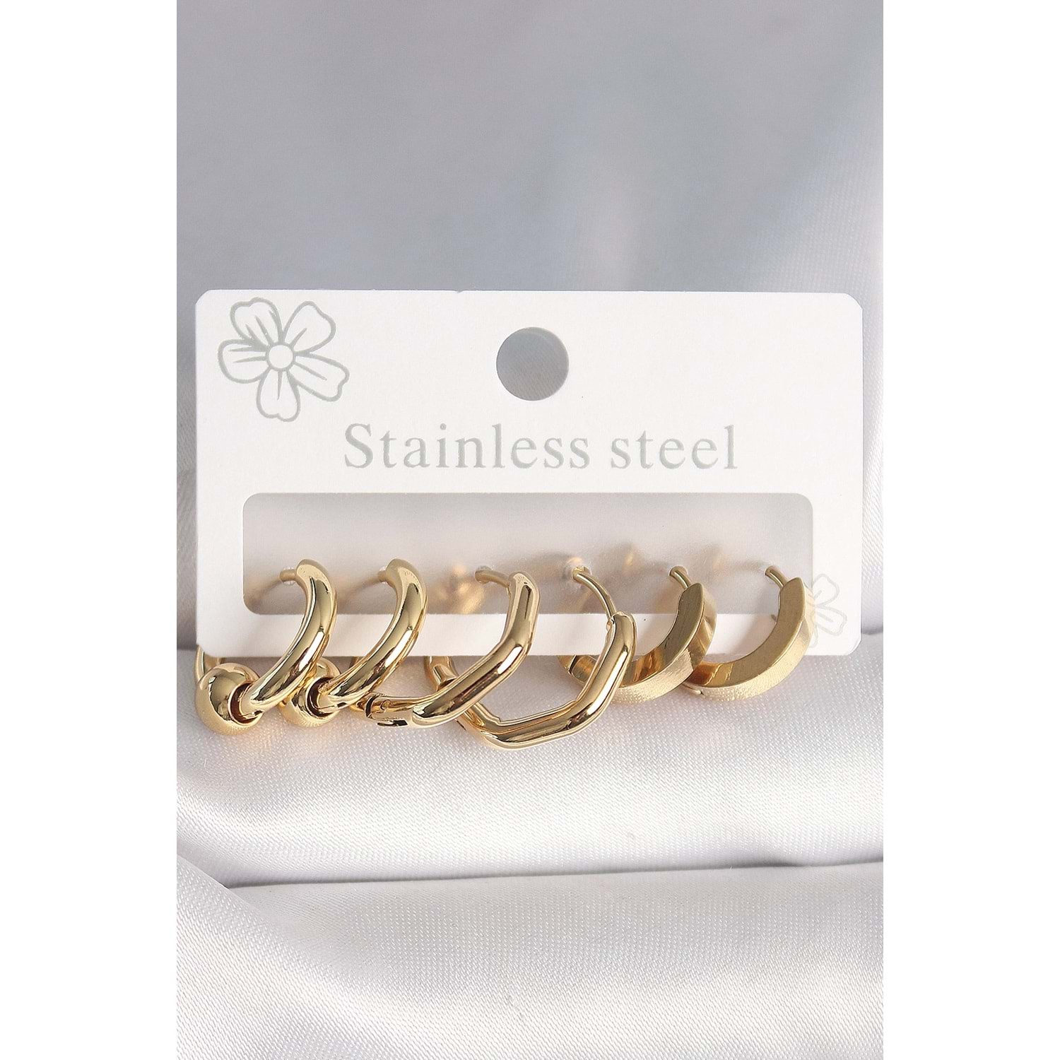 316L Çelik Gold Renk Altıgen Halka Model Kadın Küpe Seti