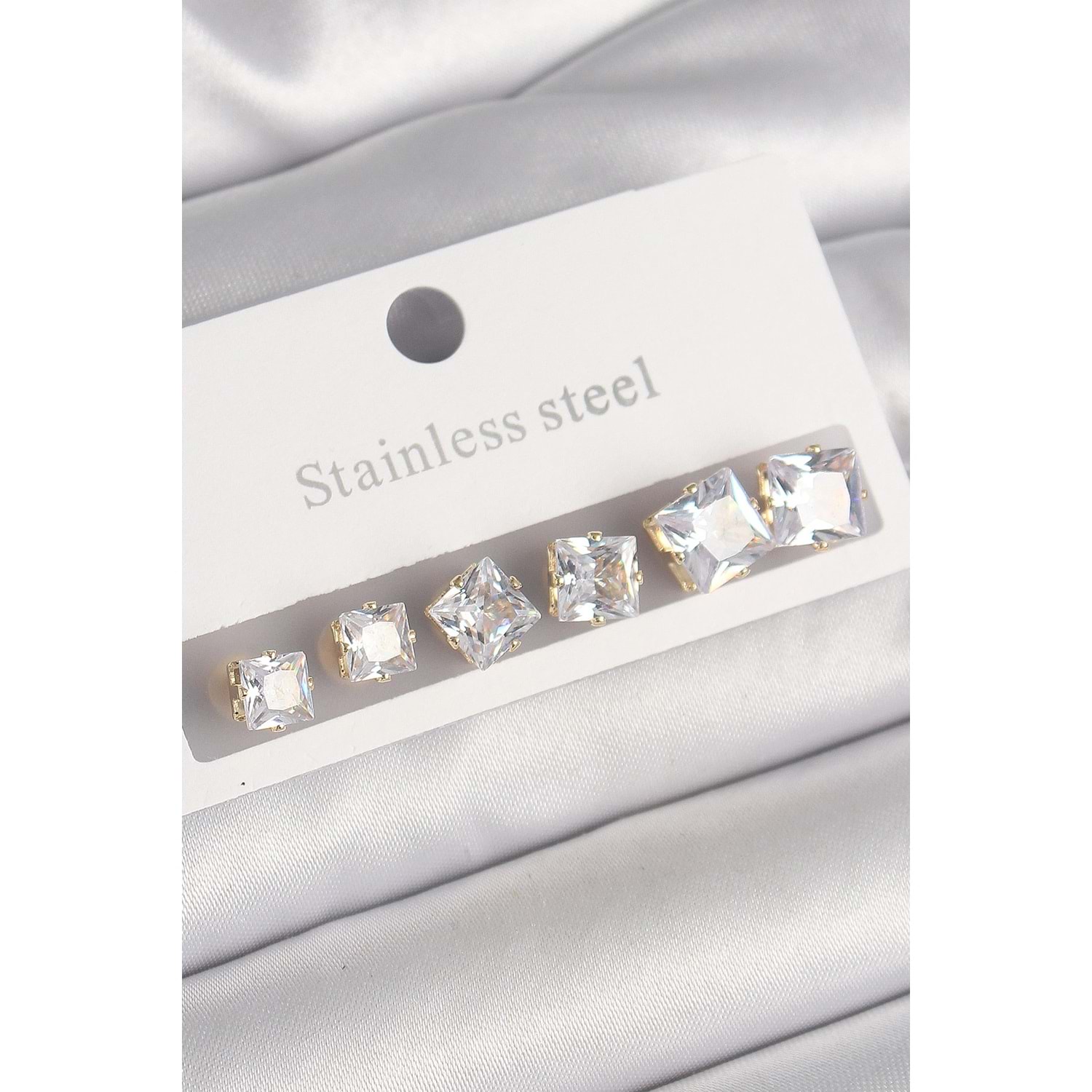 316L Çelik Gold Renk Kare Zirkon Taş Model Kadın Küpe Seti