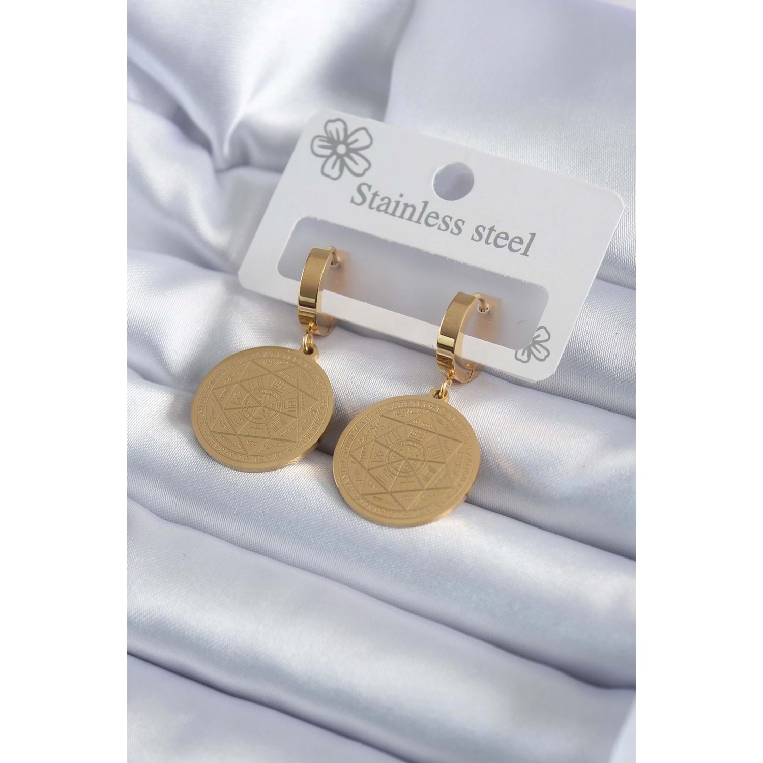 316L Çelik Gold Renk Pentagram Yıldızı İşleme Model Kadın Küpe