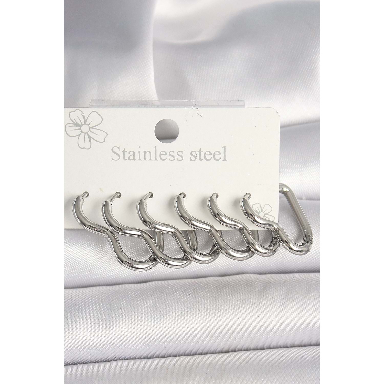 316L Çelik Gümüş Renk Kalp Model Kadın Küpe Seti