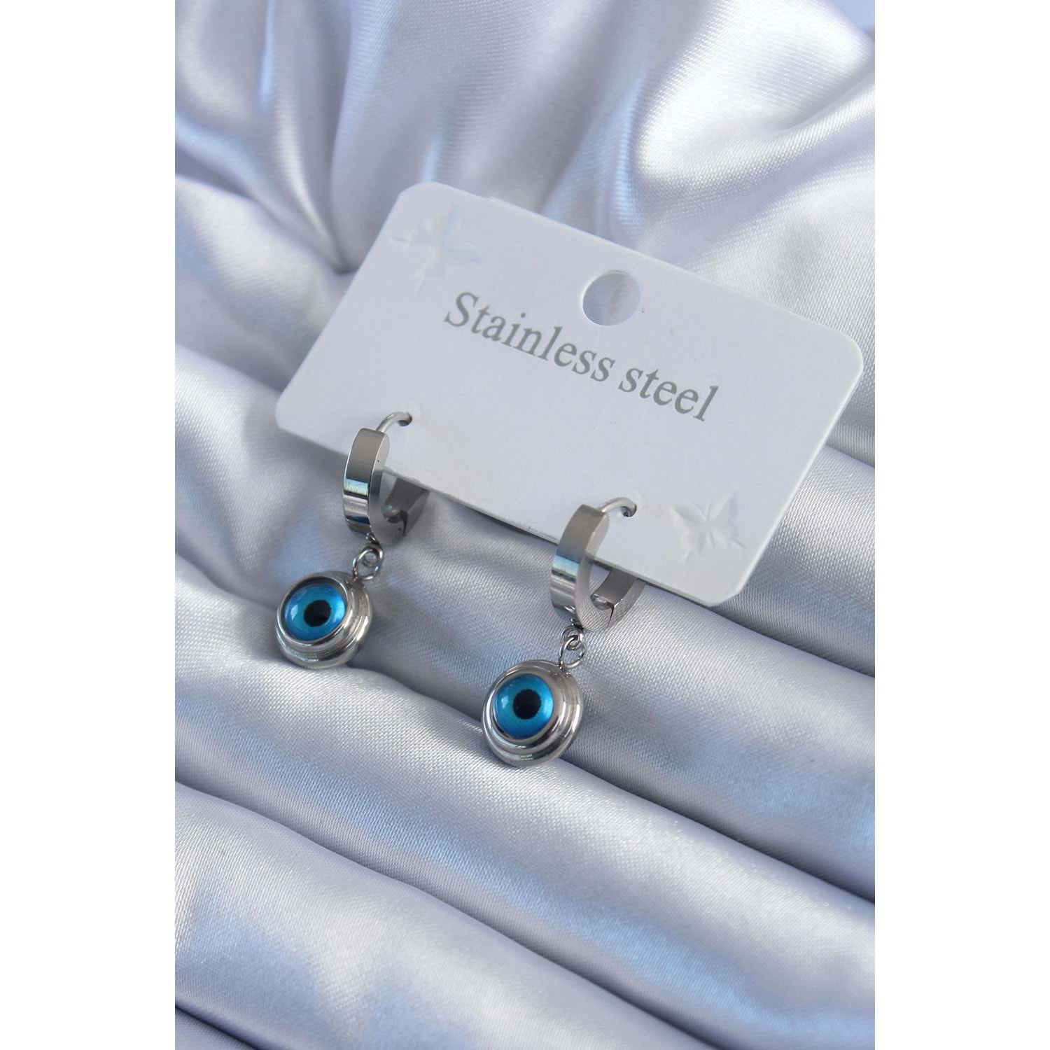 316L Çelik Gümüş Renk Nazar Boncuk Model Kadın Küpe