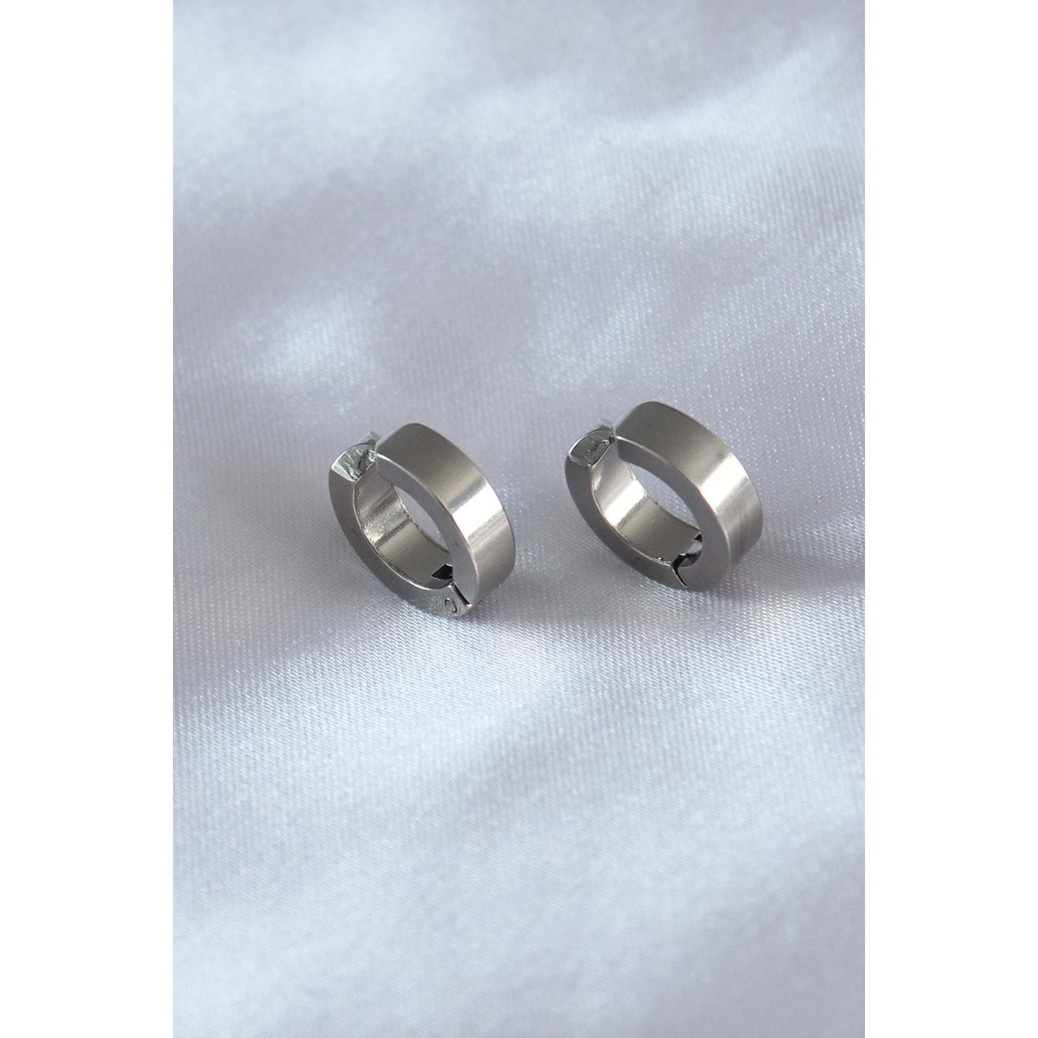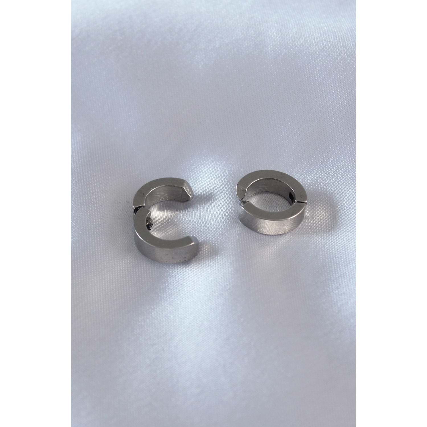 316L Çelik Gümüş Renk Sıkıştırmalı Erkek Küpe