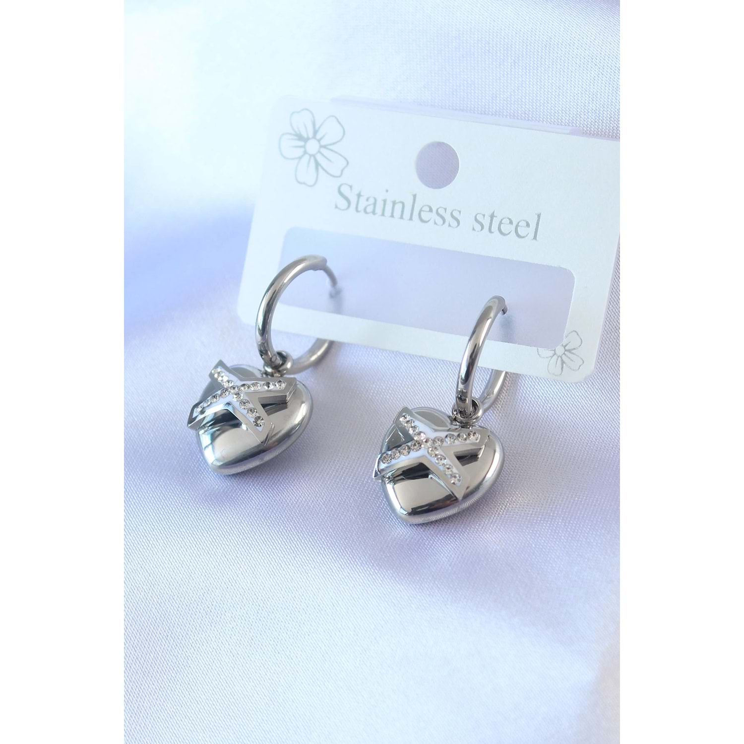 316L Çelik Gümüş Renk Zirkon Taş Detay Kalp Model Kadın Küpe