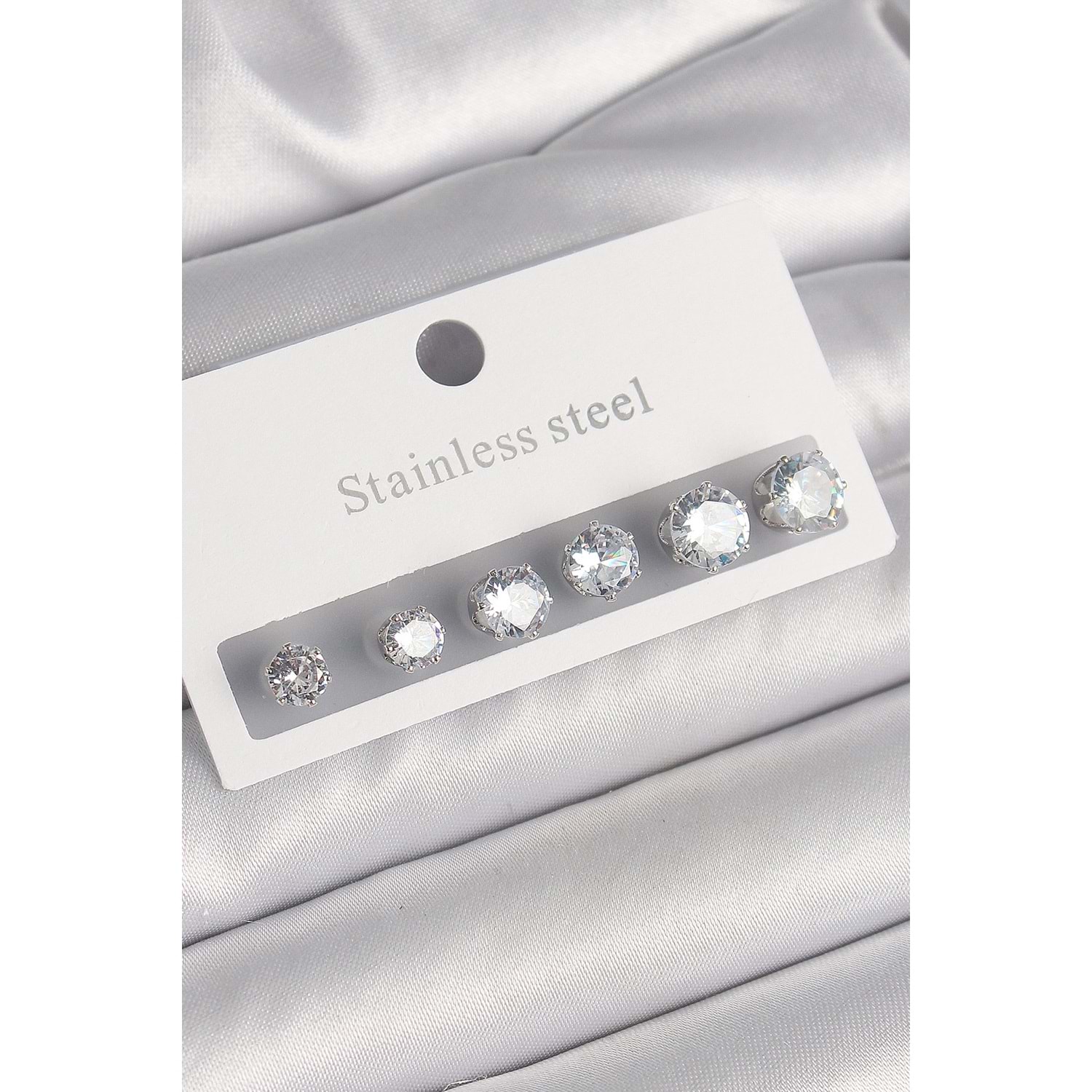 316L Çelik Gümüş Renk Zirkon Taşlı Kadın Küpe Seti