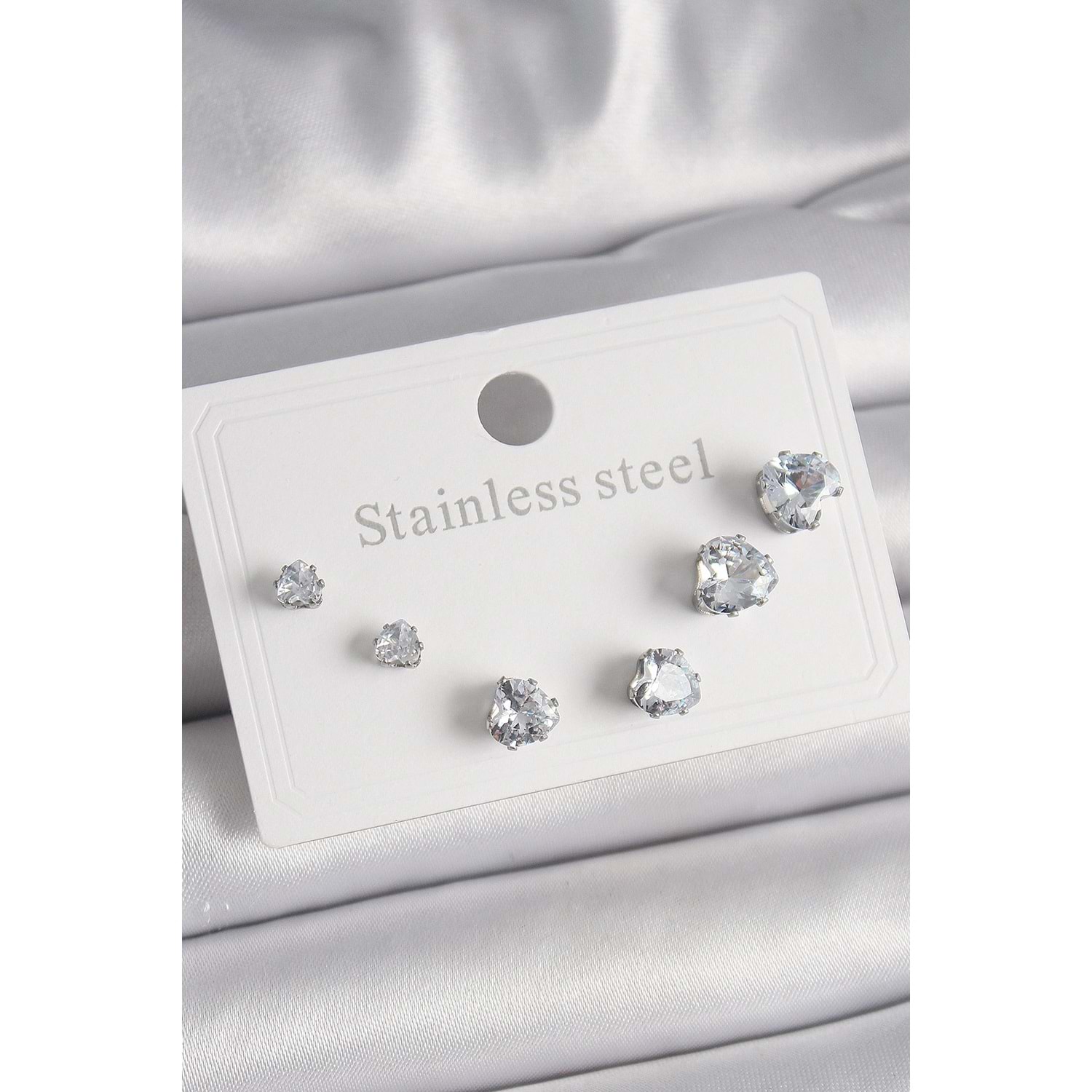 316L Çelik Gümüş Renk Zirkon Taşlı Kalp Model Kadın Küpe Seti