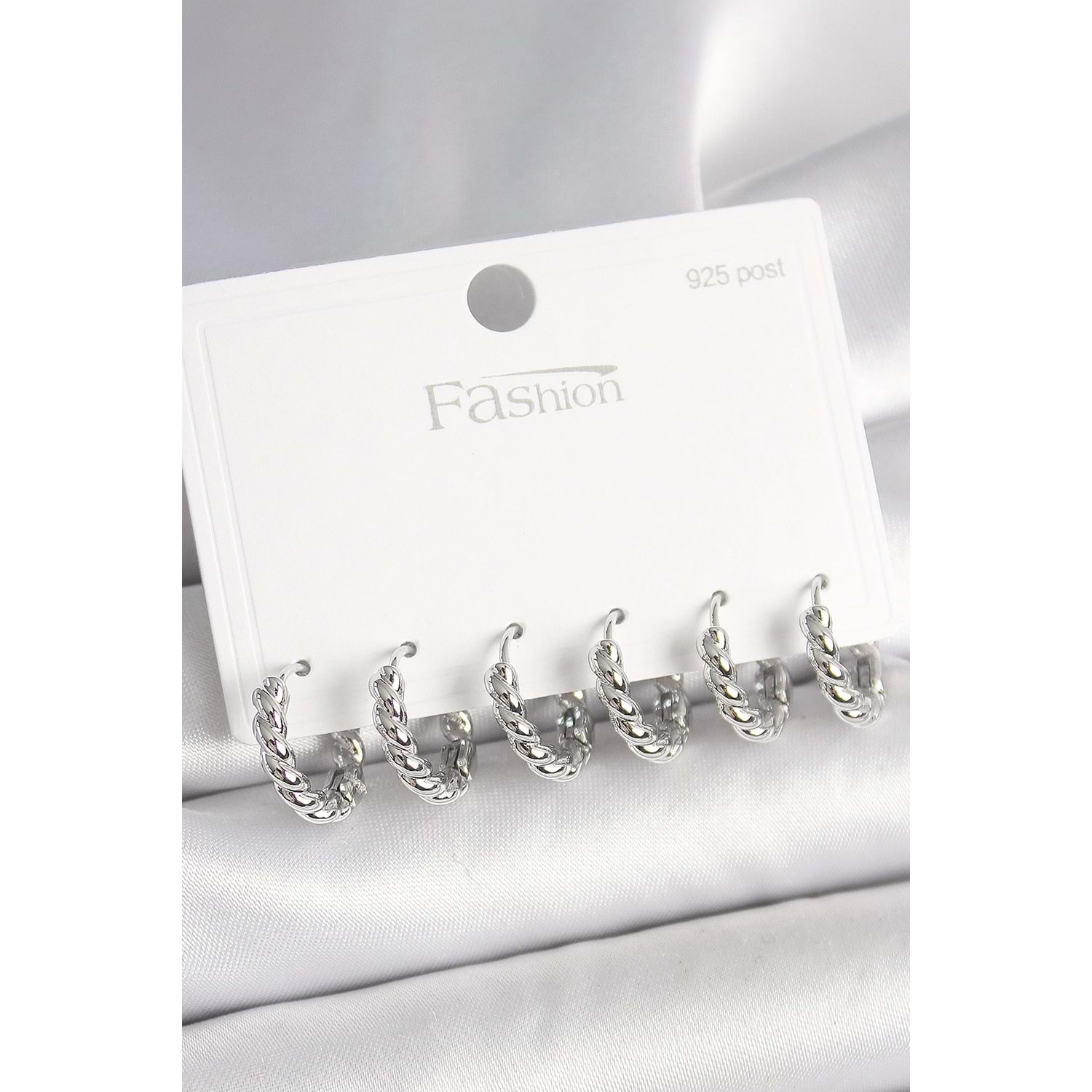 925 Ayar Gümüş Çivi Pirinç Gümüş Renk Sarmal Halka Model Kadın Küpe Seti