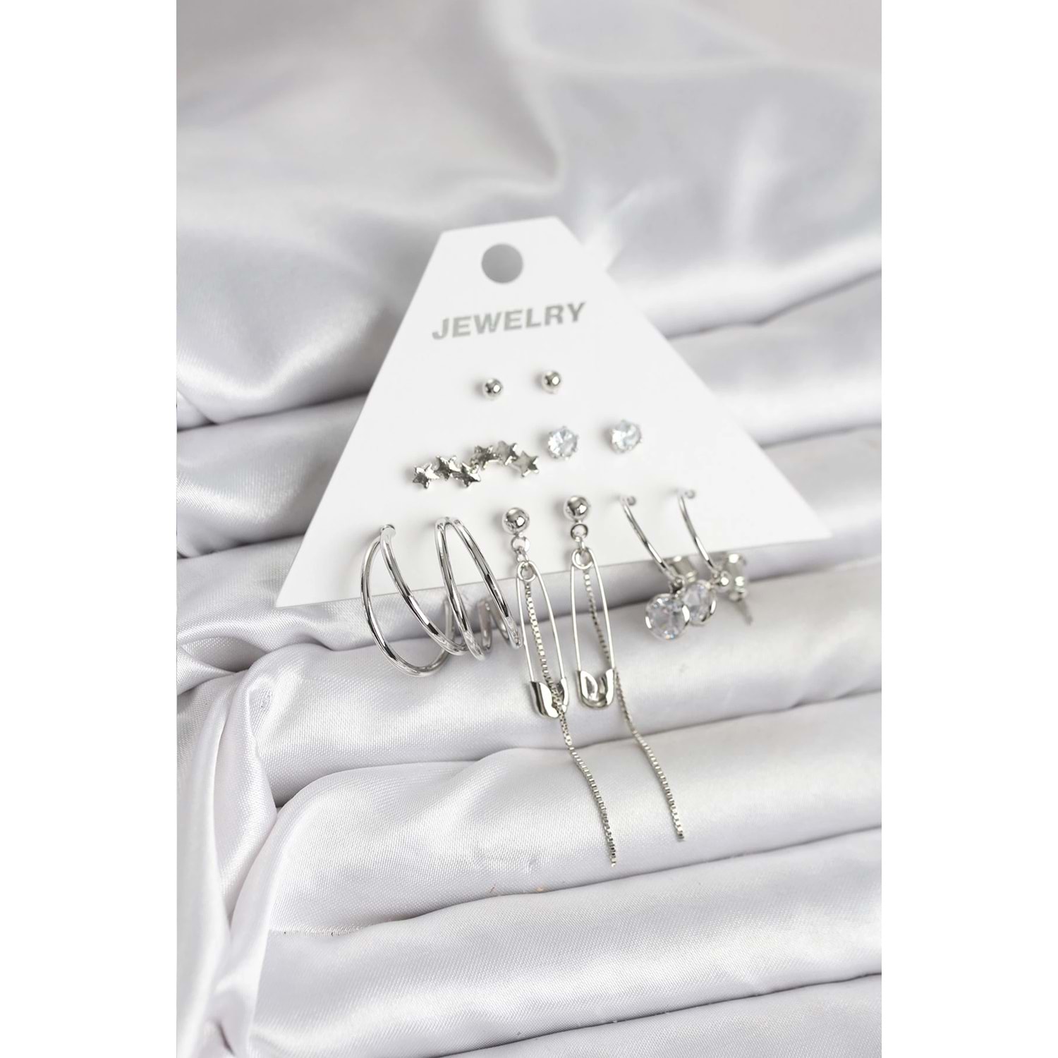 Gümüş Renk 6'lı Pirinç Küpe Seti