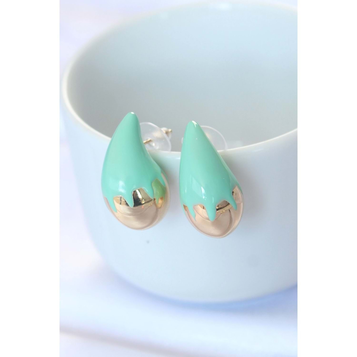 Minimal Turkuaz Mineli Çift Renk Damla Küpe
