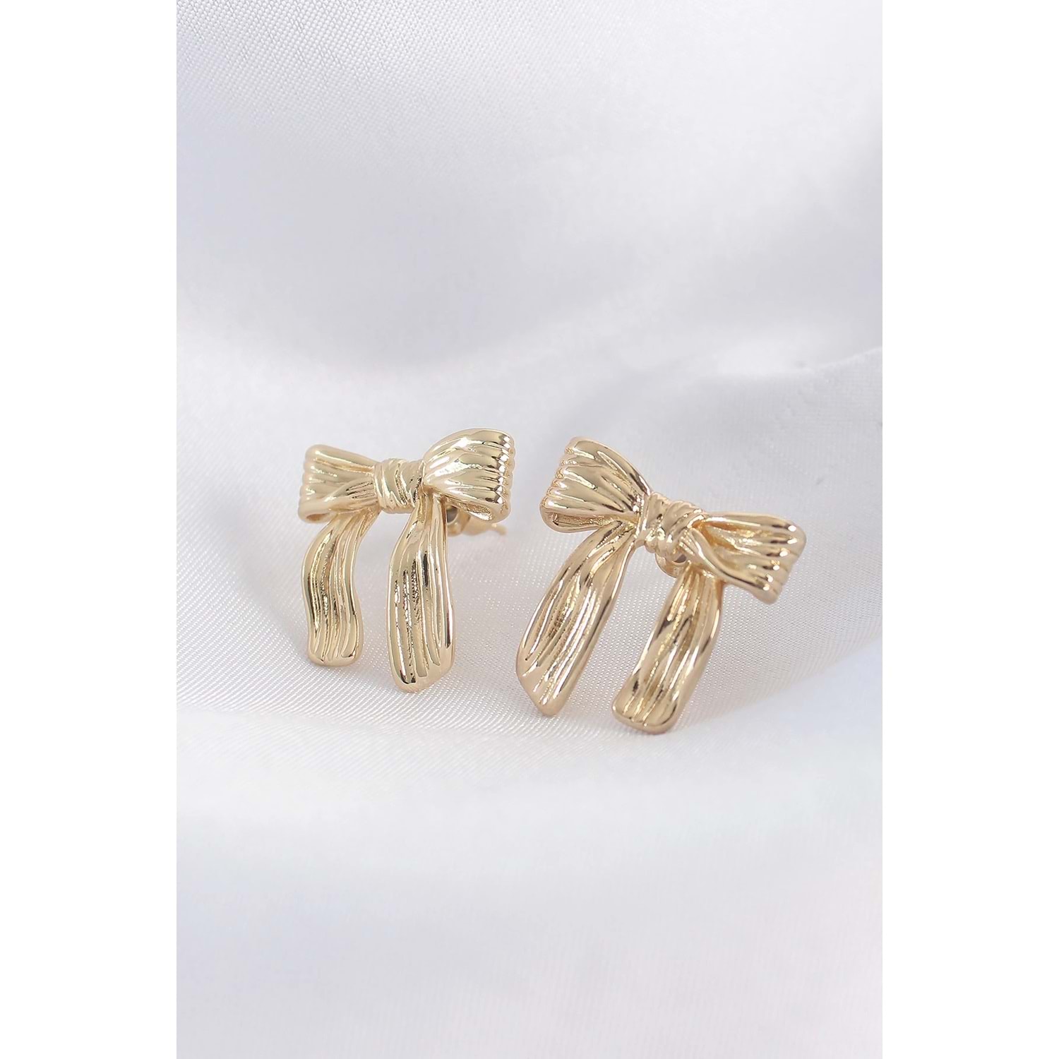 Pirinç Gold Renk Çizgi Detay Fiyonk Küpe