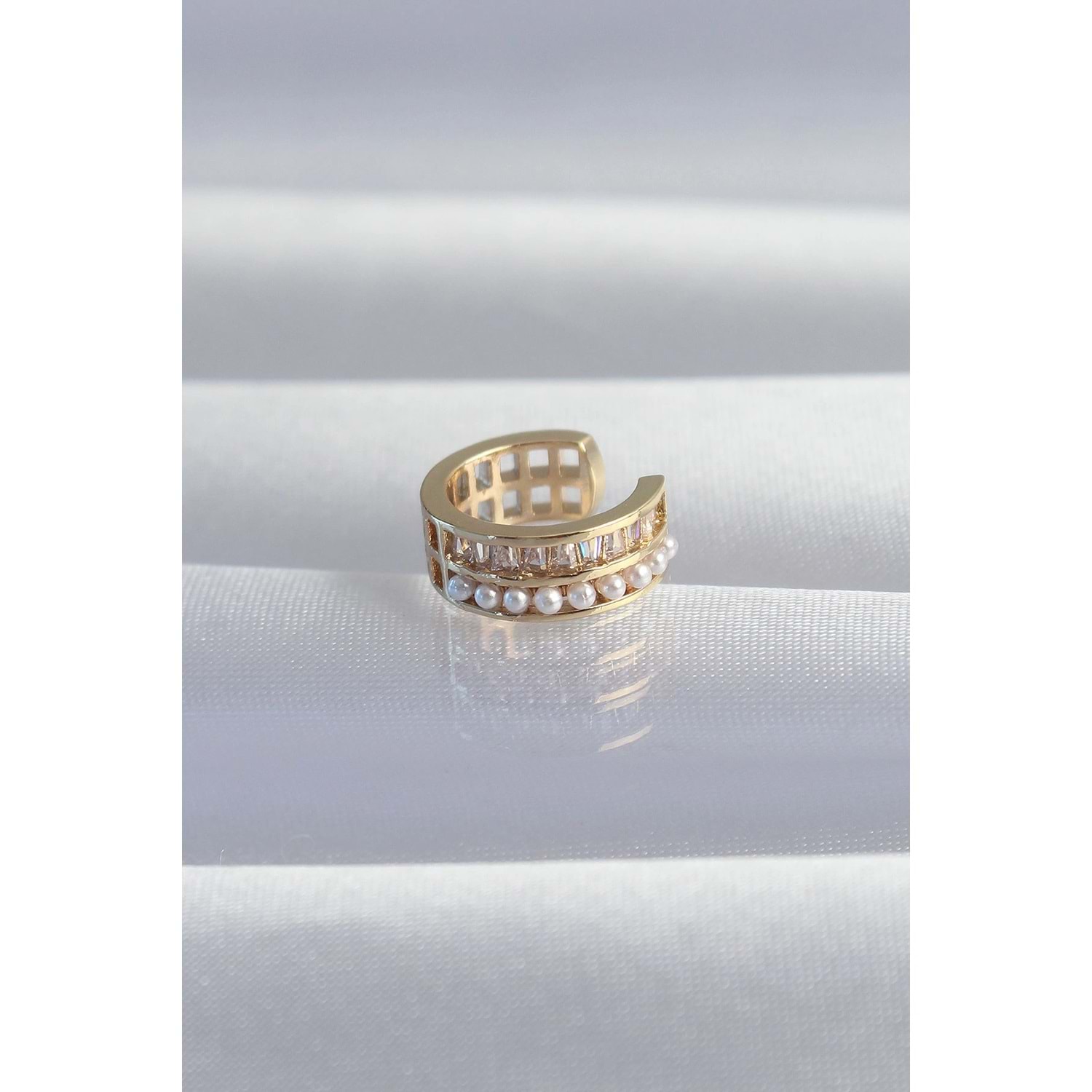 Pirinç Gold Renk İncili Baget Taşlı Earcuff Küpe