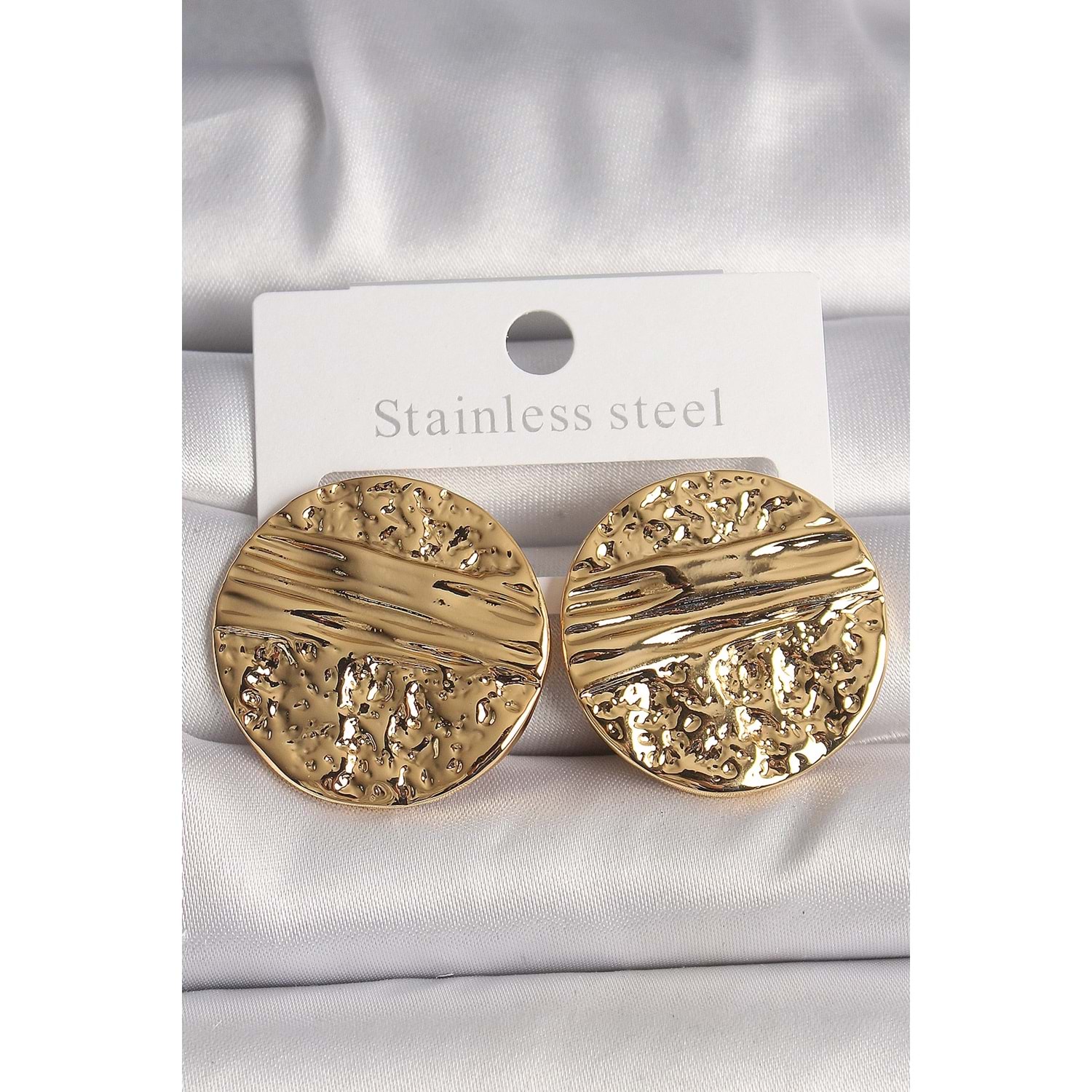 Pirinç Gold Renk İşlemeli Daire Plaka Model Kadın Küpe
