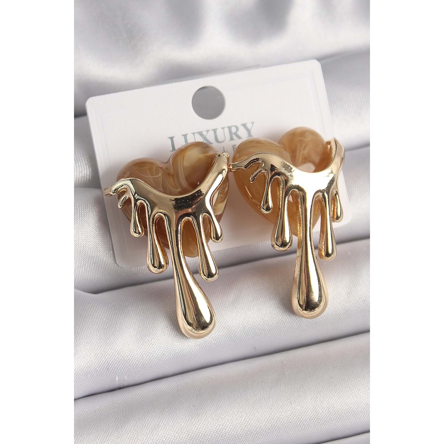 Pirinç Gold Renk Krem Sedefli Akan Kalp Model Kadın Küpe