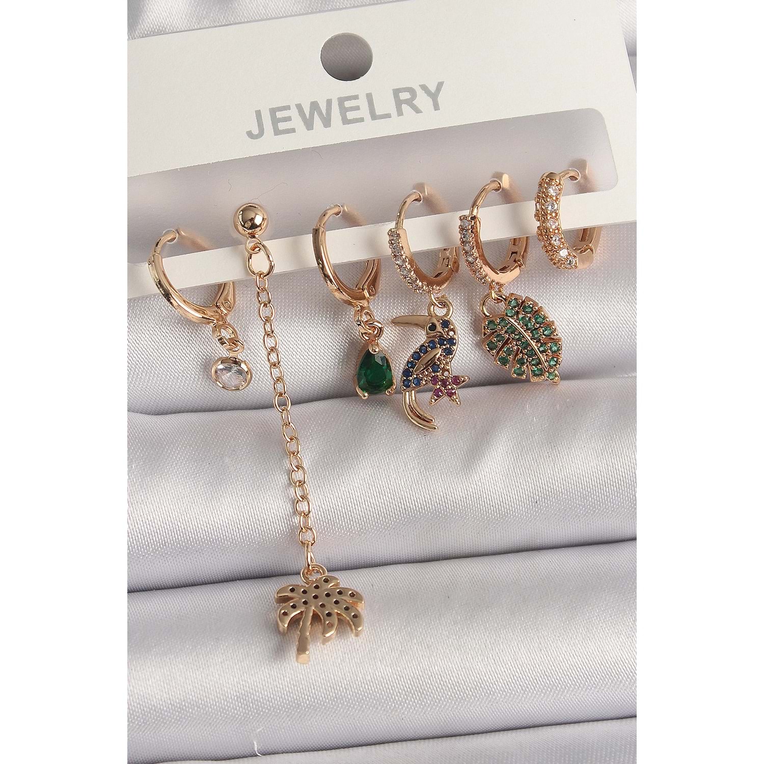 Pirinç Gold Renk Sallantı Zirkon Taşlı Ağaç Figür Kadın Küpe Seti
