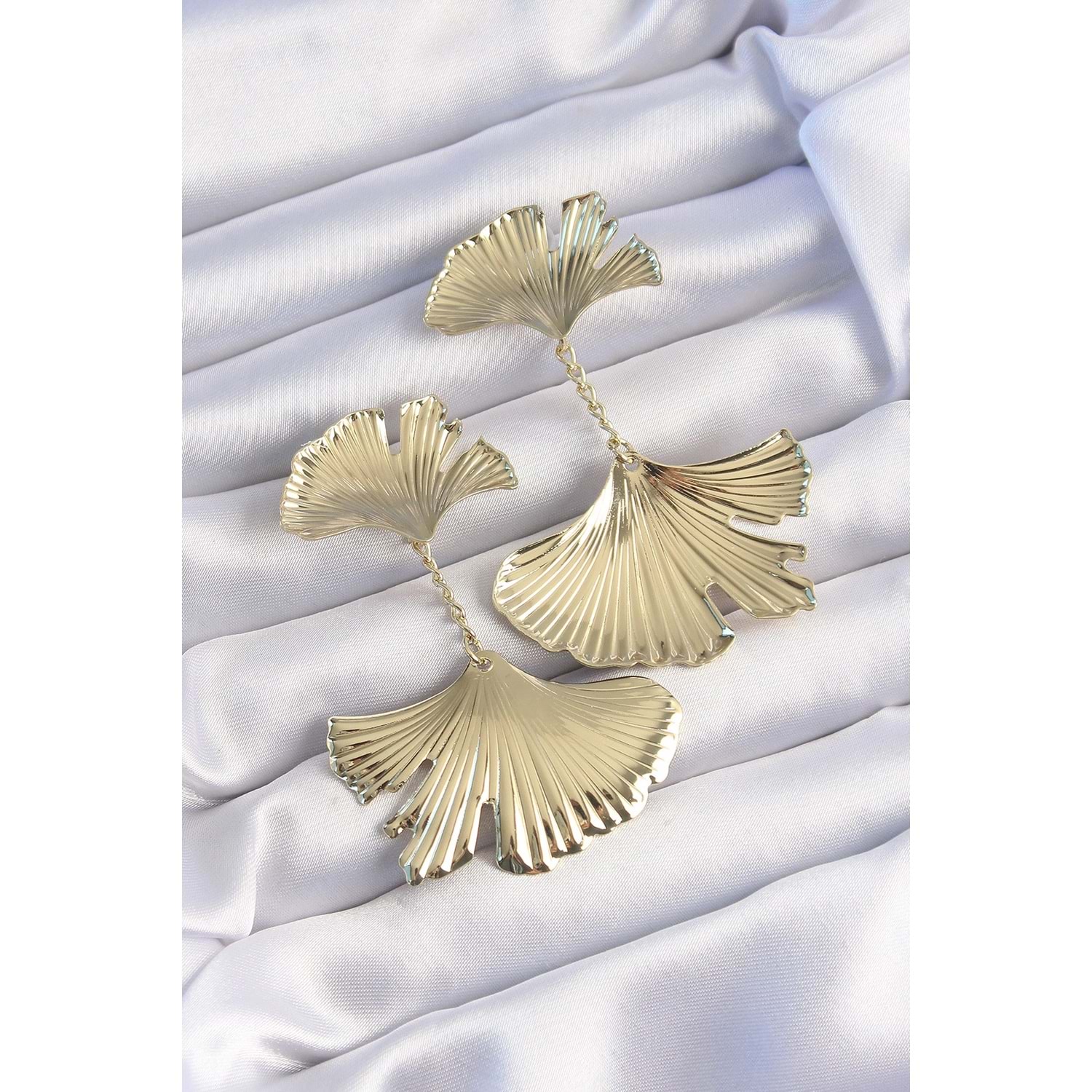Pirinç Gold Renk Tırtıklı Yaprak Model Sallantılı Küpe