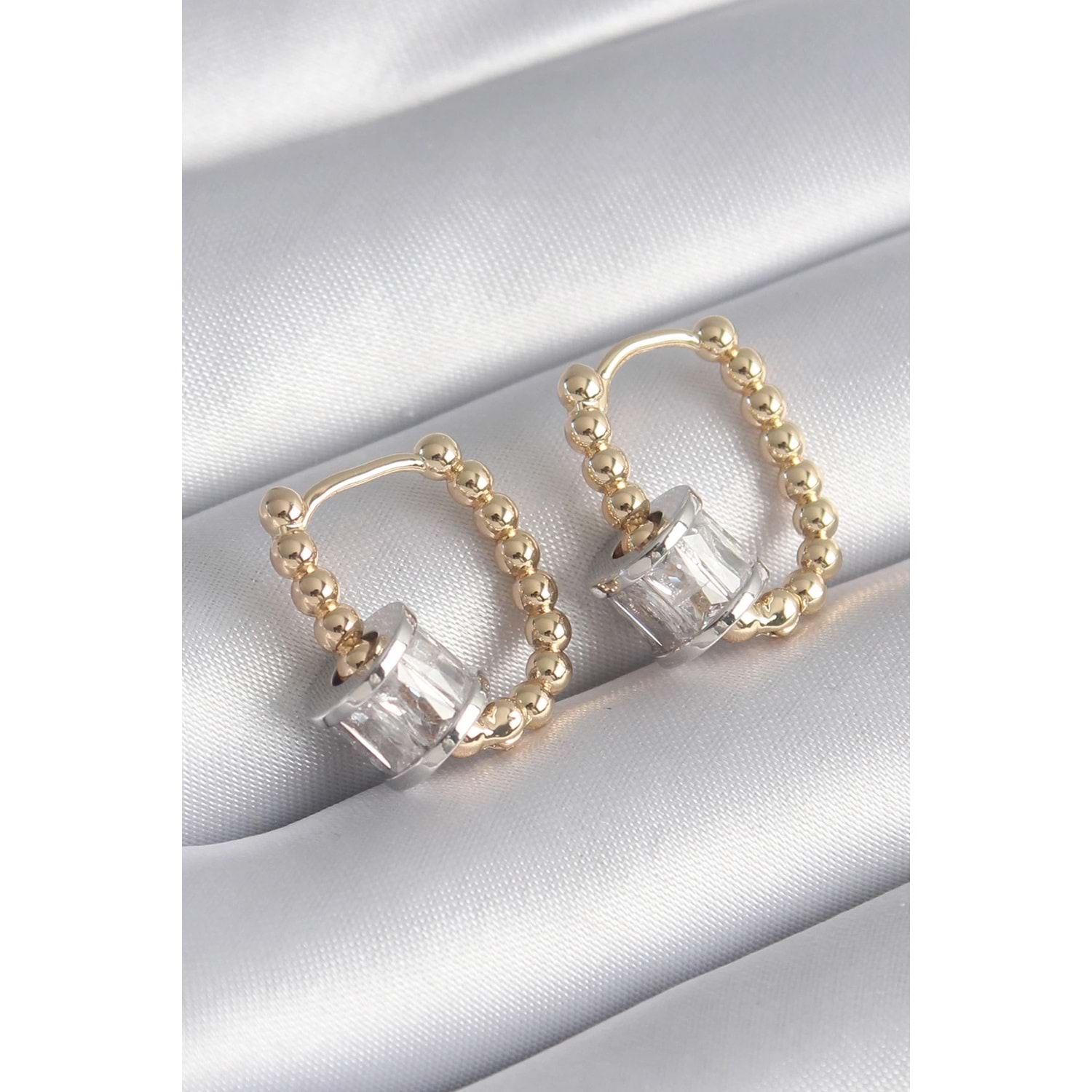 Pirinç Gold Renk Top Model Gümüş Renk Zirkon Taşlı Kadın Küpe