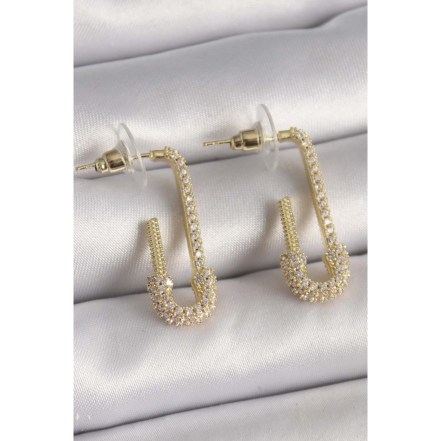 Pirinç Gold Renk Zirkon Taşlı Çengelli İğne Model Kadın Küpe