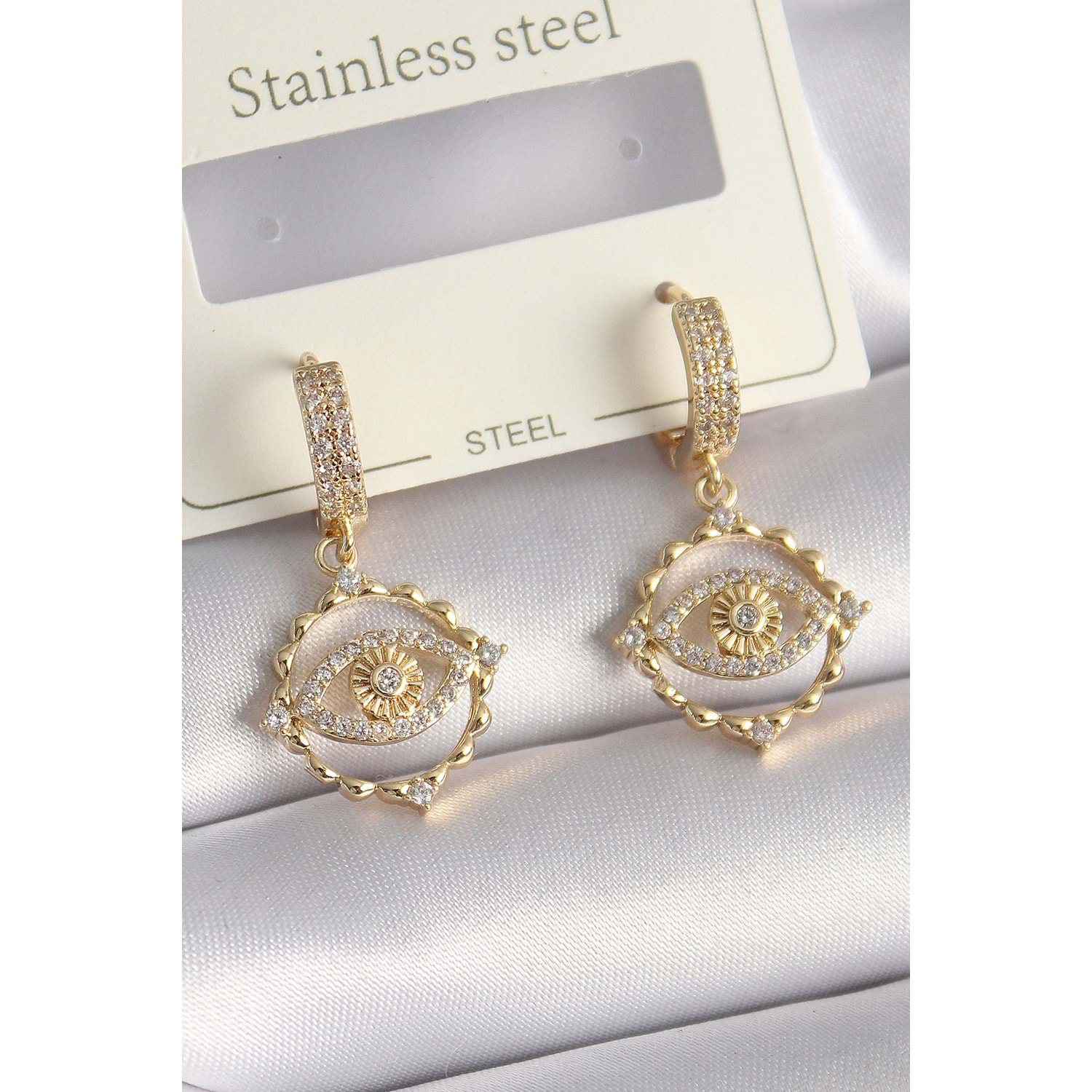 Pirinç Gold Renk Zirkon Taşlı Göz Model Kadın Küpe