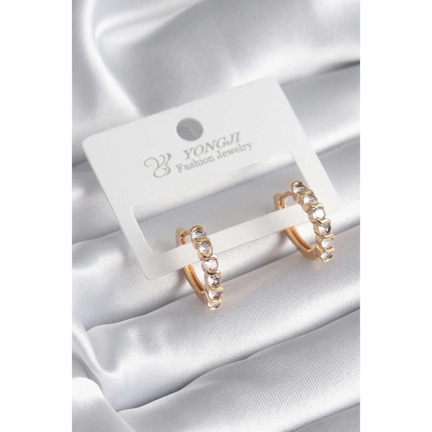Pirinç Gold Renk Zirkon Taşlı Halka Model Kadın Küpe