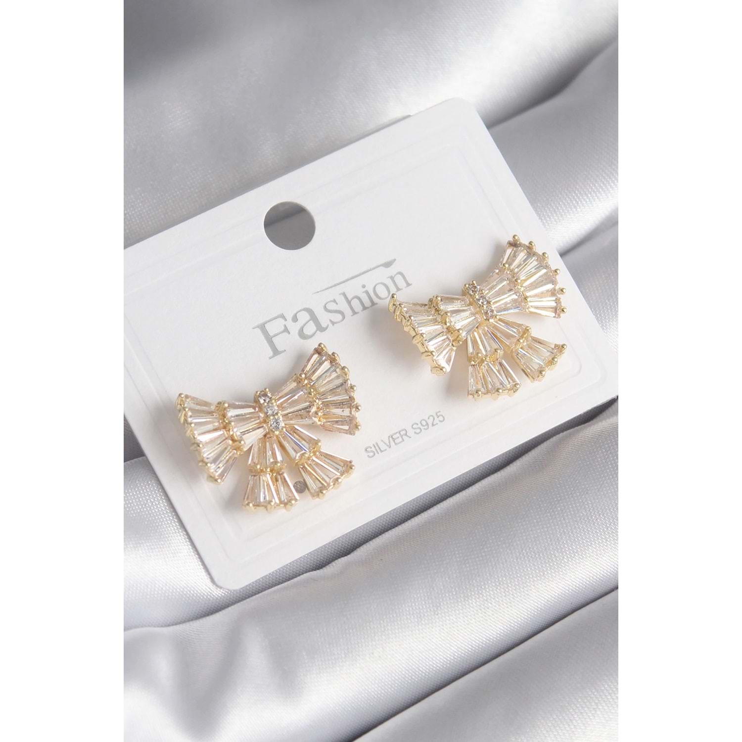Pirinç Gold Renk Zirkon Taşlı Kurdele Model Kadın Küpe