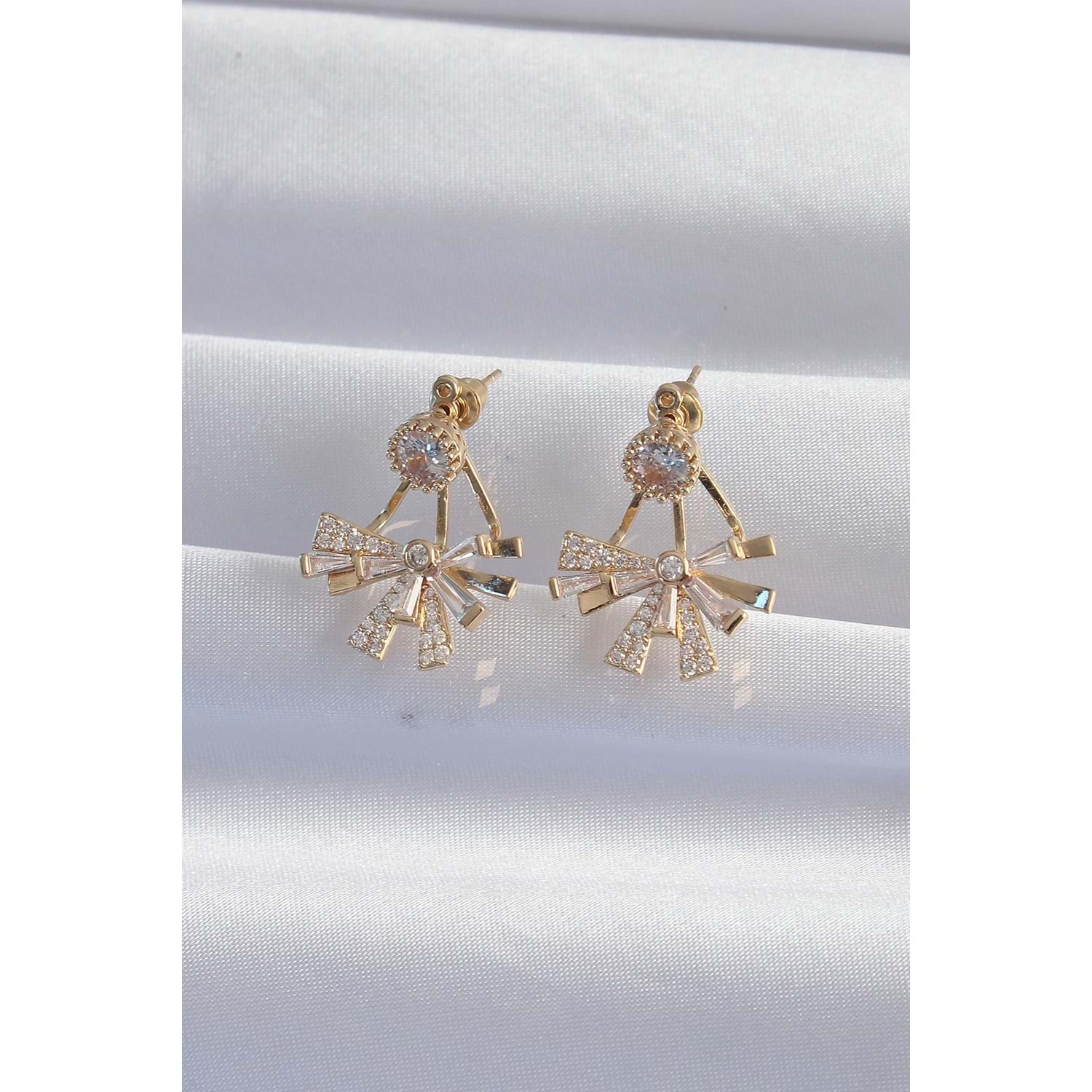 Pirinç Gold Renk Zirkon Taşlı Yassı Fiyonk Model Küpe