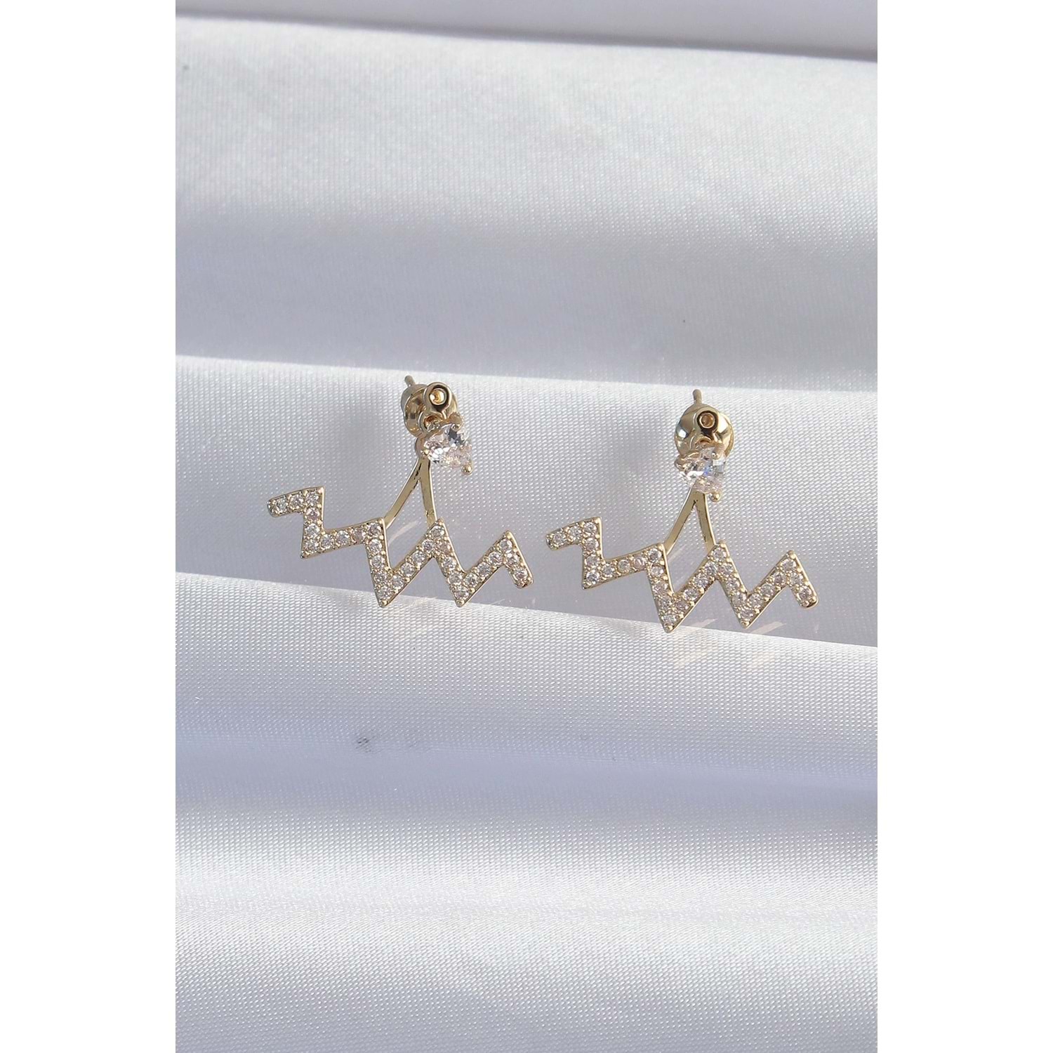 Pirinç Gold Renk Zirkon Taşlı Zikzak Küpe