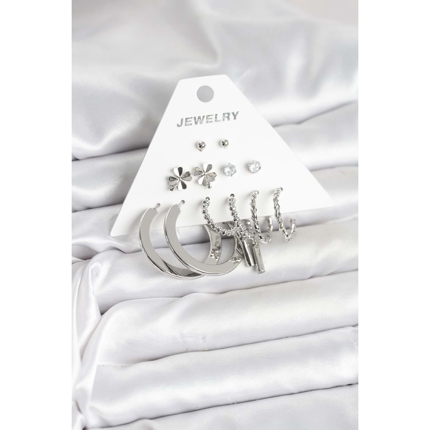 Pirinç Gümüş Renk 6 Çift Kadın Küpe Seti