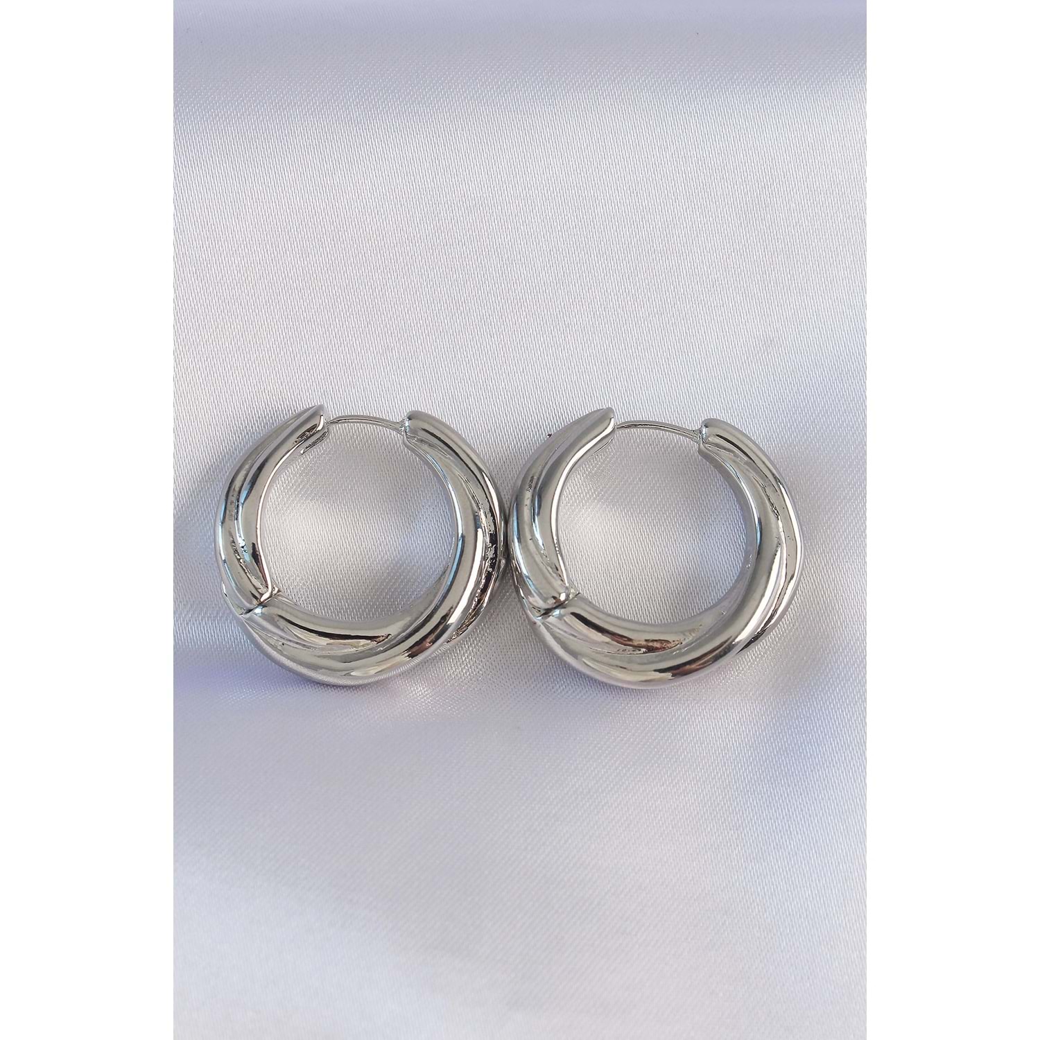 Pirinç Gümüş Renk Asimetrik Kıvrım Küpe