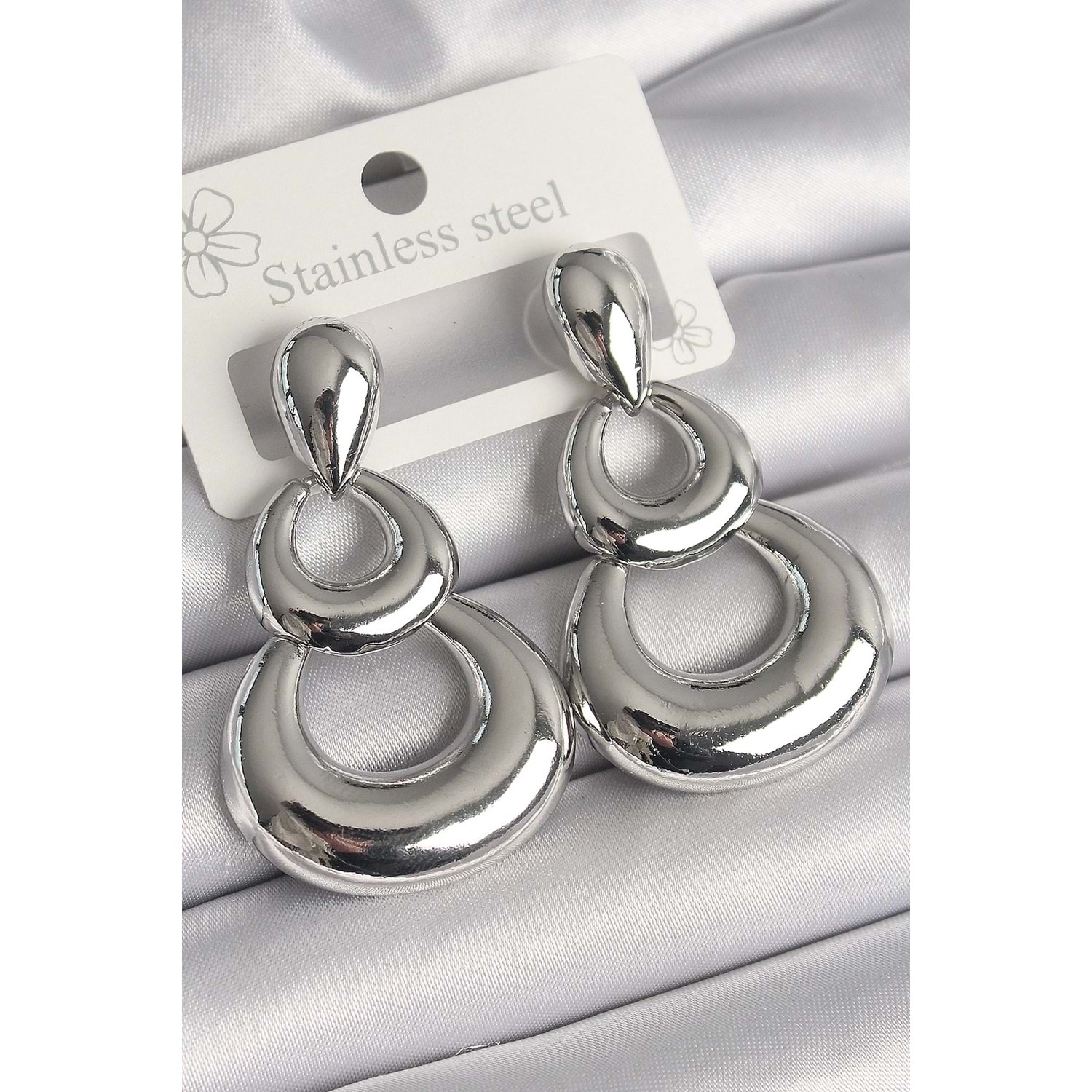 Pirinç Gümüş Renk Damla Detay Sallantı Halka Model Kadın Küpe