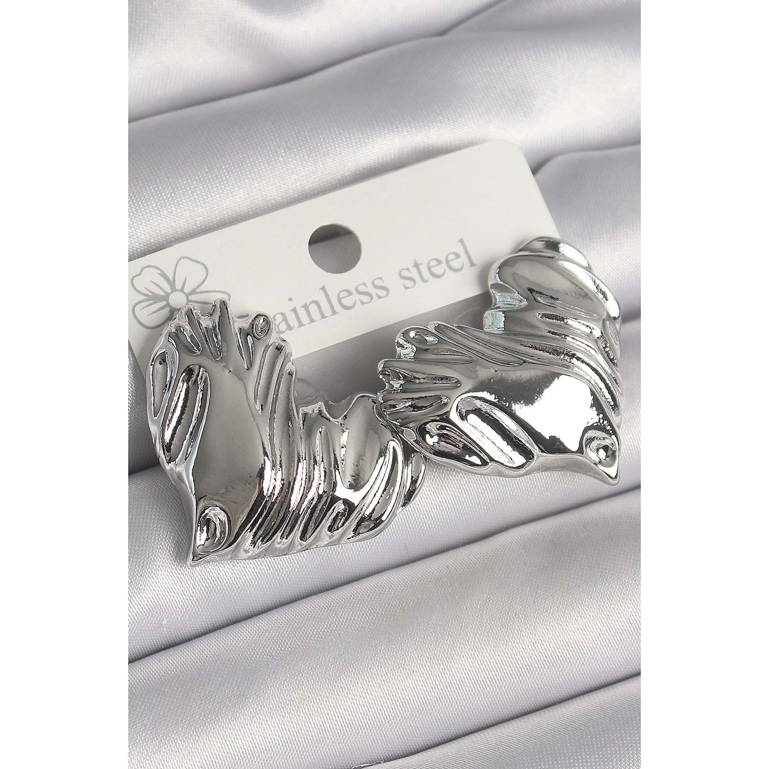 Pirinç Gümüş Renk İşlemeli Kalp Model Kadın Küpe