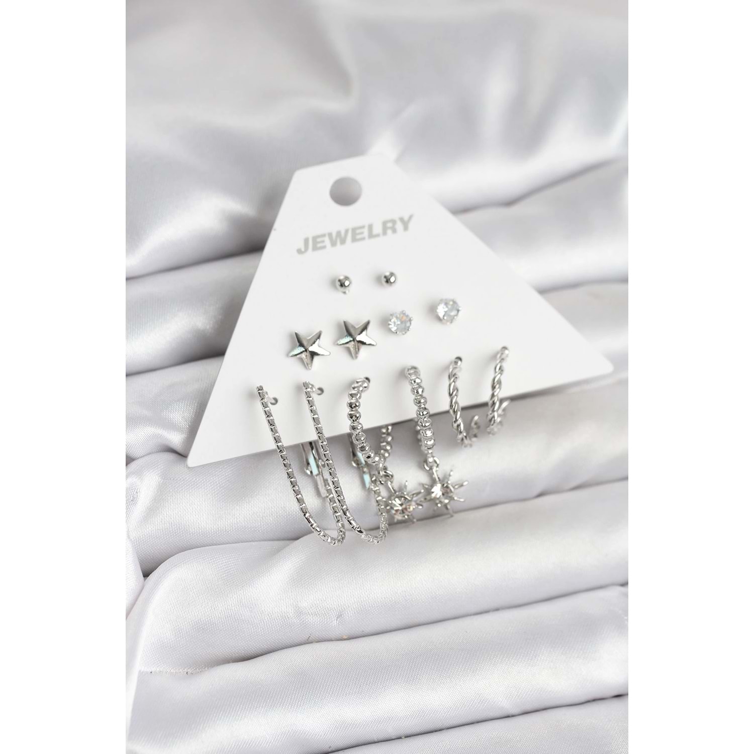 Pirinç Gümüş Renk Küpe Seti 6'lı