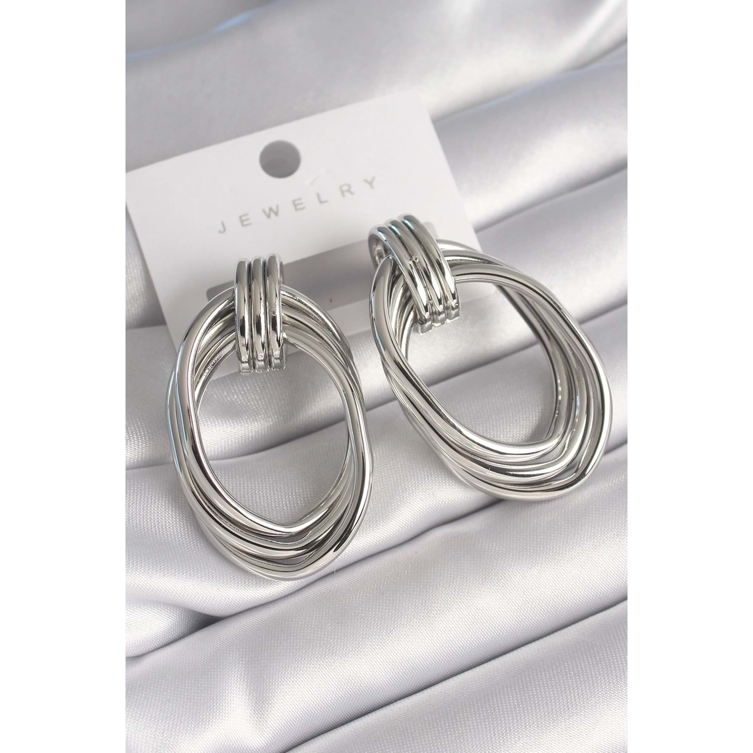 Pirinç Gümüş Renk Oval Model Kadın Küpe