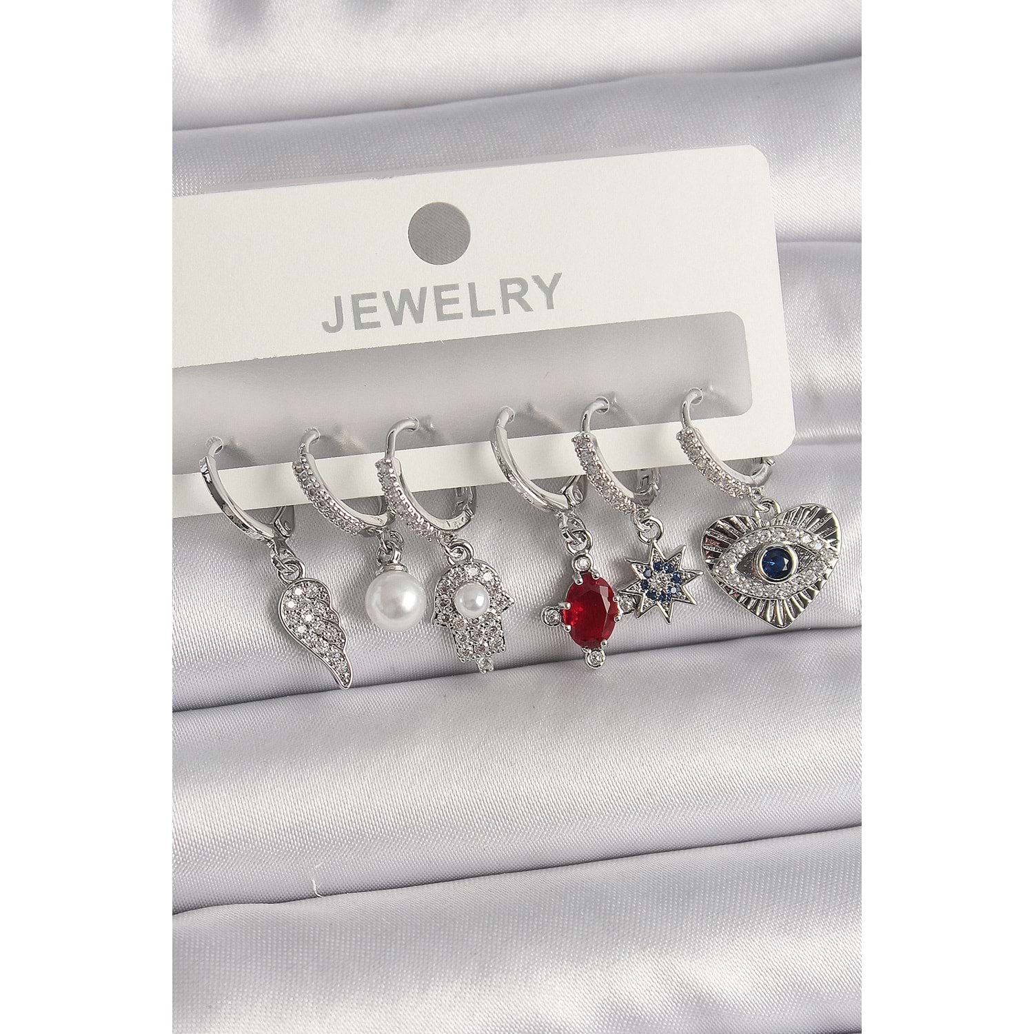 Pirinç Gümüş Renk Sallantı Zirkon Taşlı Fatma Ana El Figür Kadın Küpe Seti