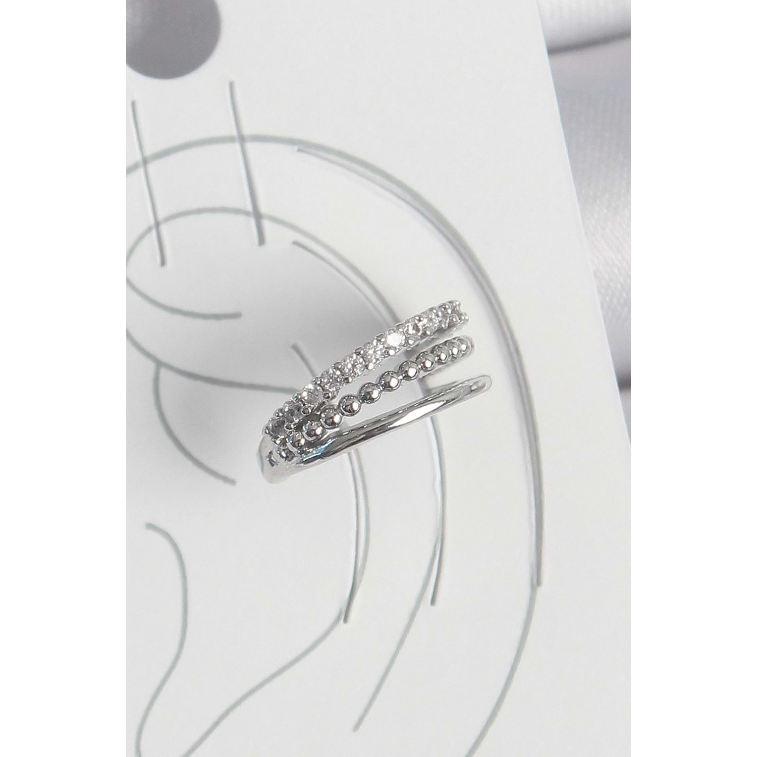 Pirinç Gümüş Renk Zirkon Taşlı 3'Lü Sıralı Model Kadın Kıkırdak Küpe