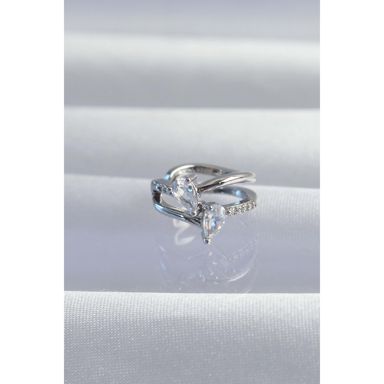 Pirinç Gümüş Renk Zirkon Taşlı Damla Earcuff Küpe