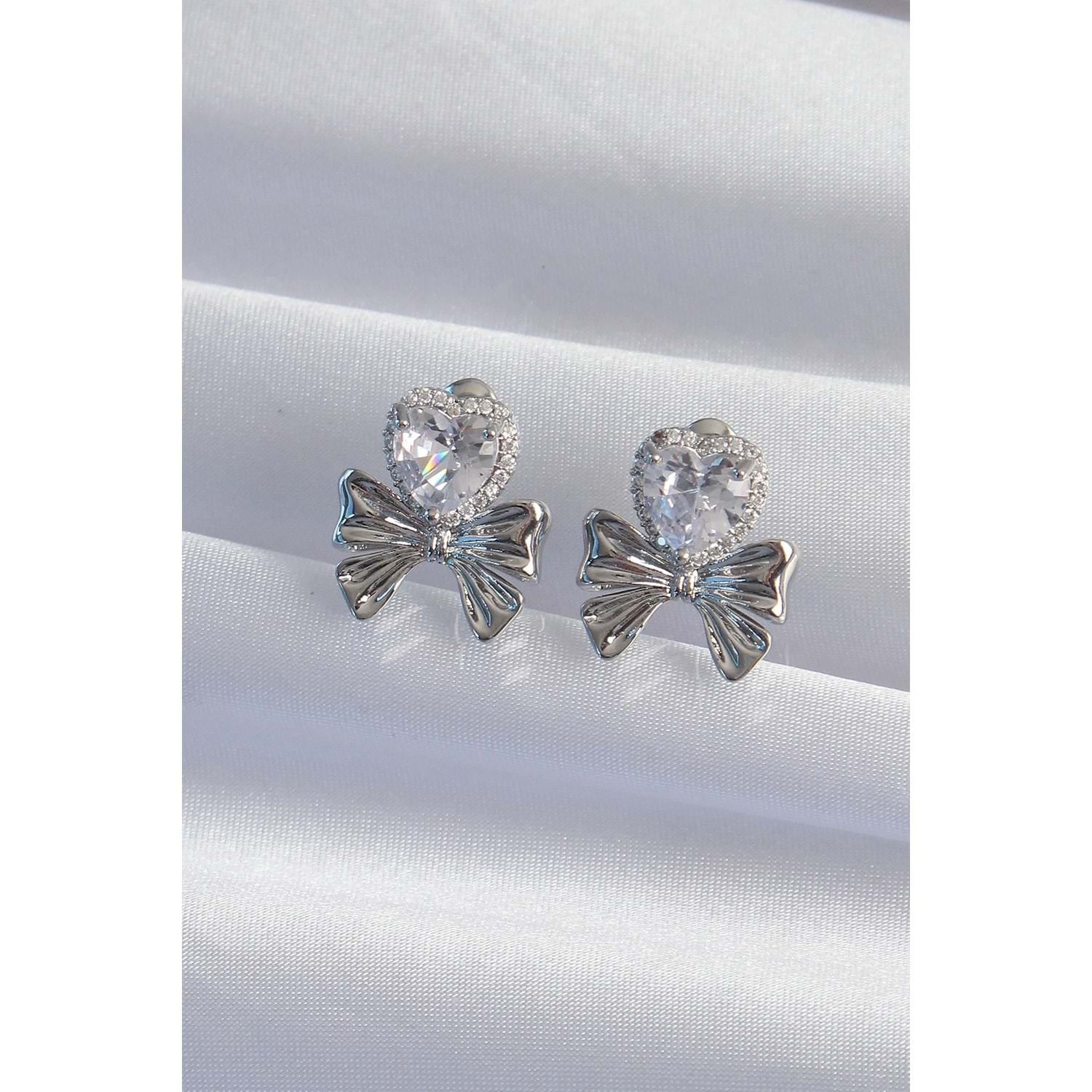 Pirinç Gümüş Renk Zirkon Taşlı Kalp Model Fiyonk Küpe