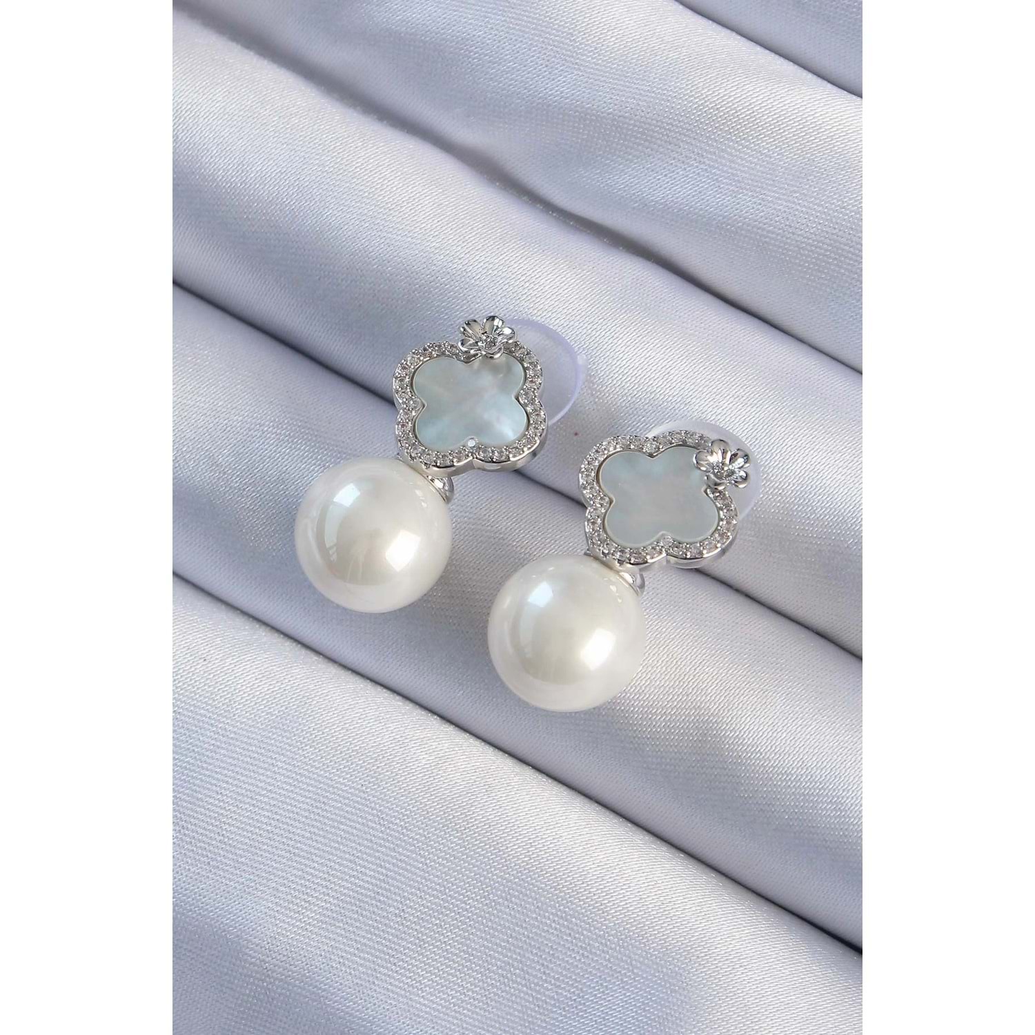 Pirinç Gümüş Renk Zirkon Taşlı Minimal Çiçek Tasarımlı Kadın Küpe