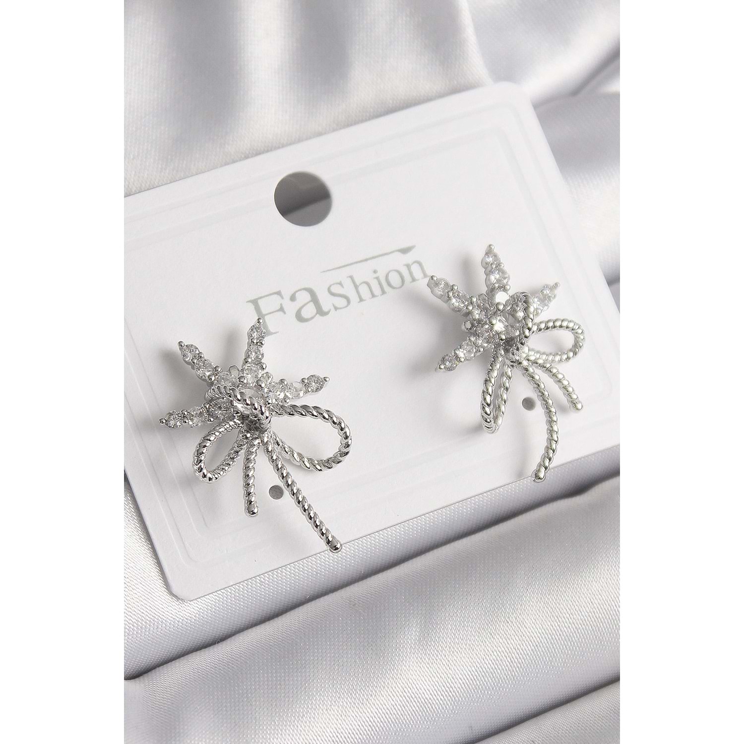 Pirinç Gümüş Renk Zirkon Taşlı Yıldız Düğüm Model Kadın Küpe