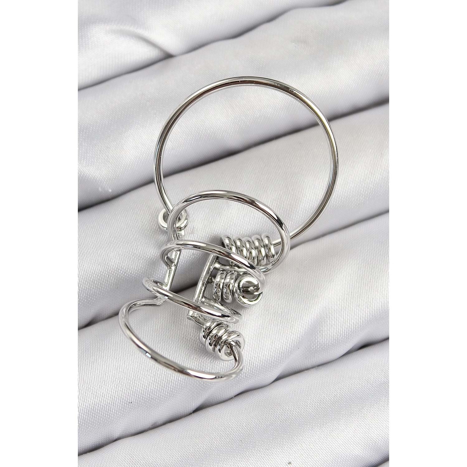 Pirinç Halkalı Model Gümüş Renk Kıkırdak Küpe