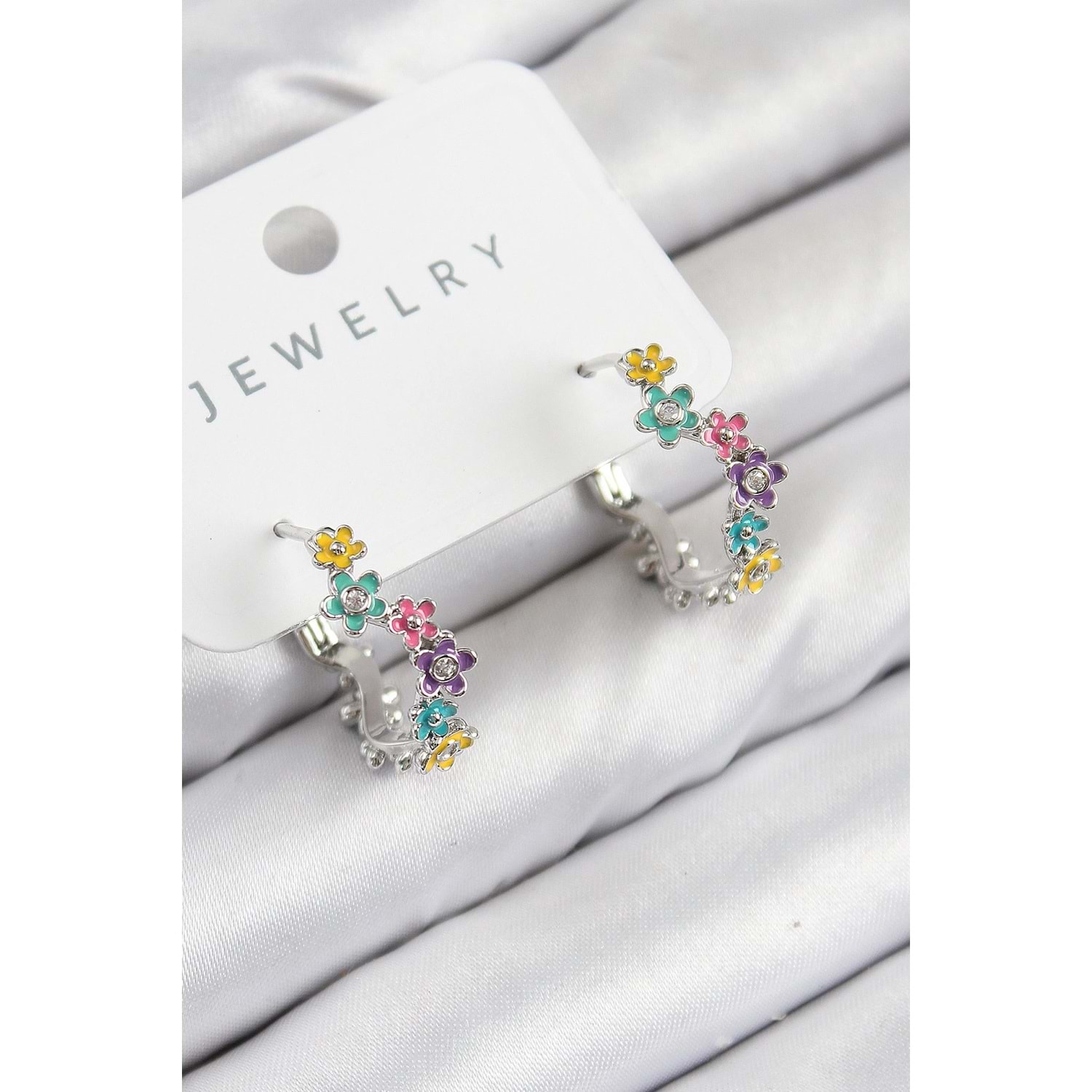 Pirinç Renkli Papatya Model Gümüş Renk Kadın Küpe