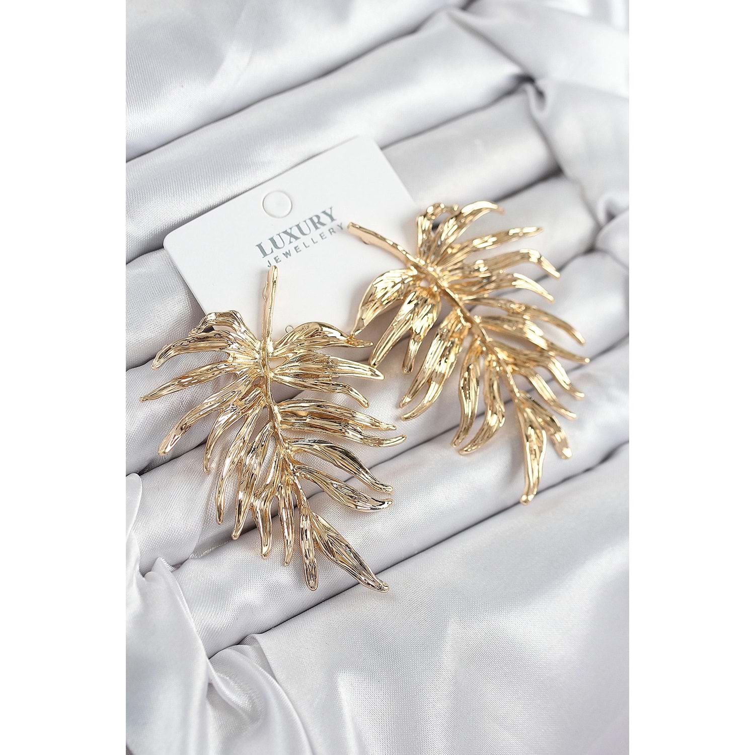 Pirinç Yaprak Model Gold Renk Kadın Küpe