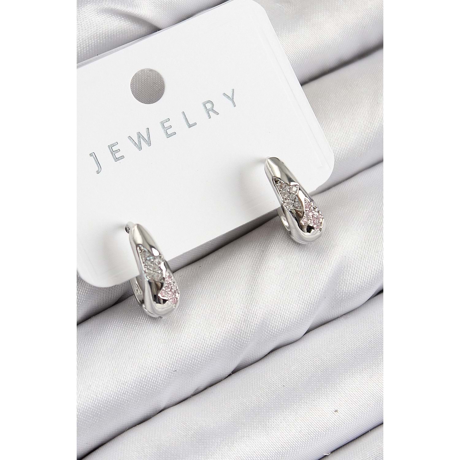 Pirinç Zirkon Taş Desenli Model Gümüş Renk Kadın Küpe