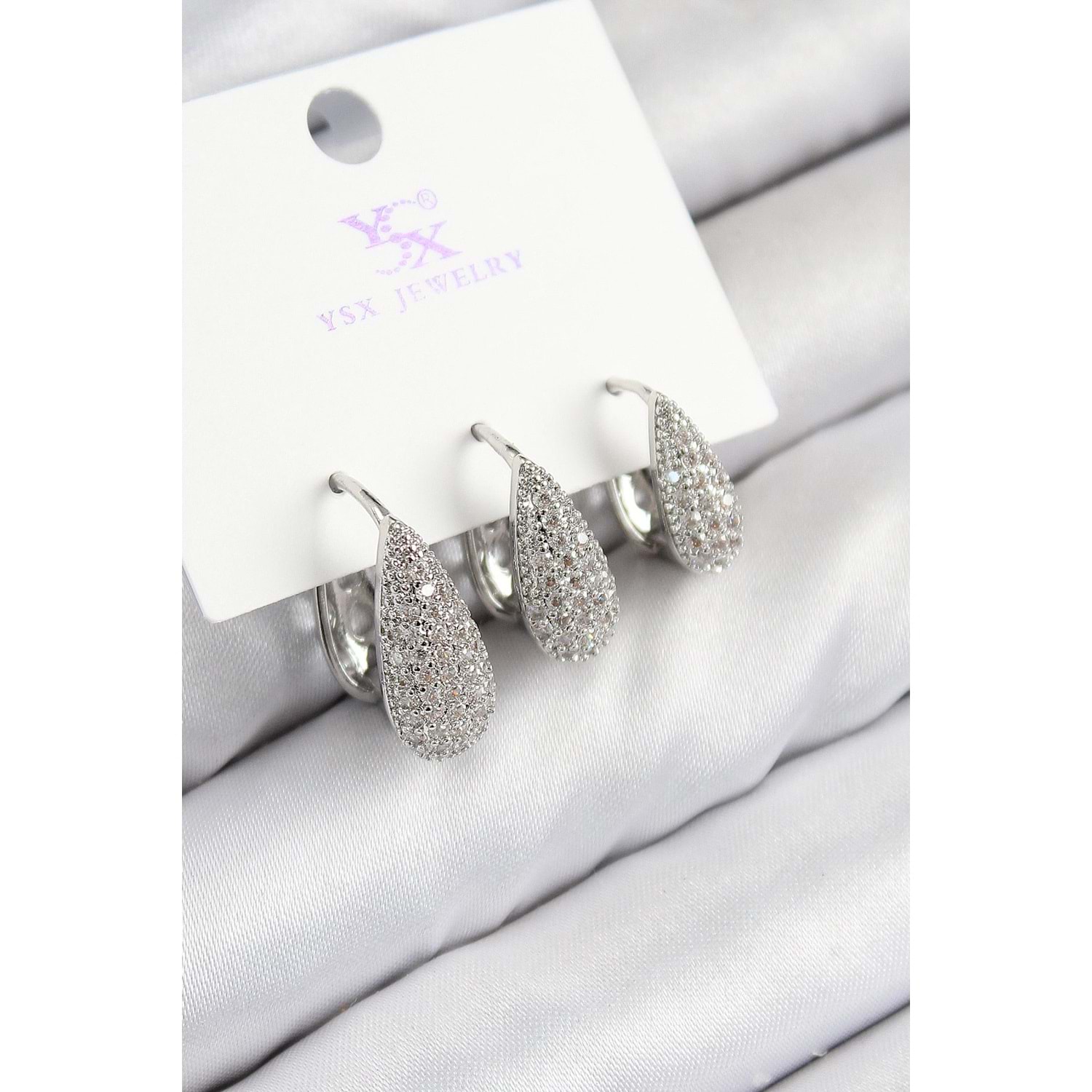 Pirinç Zirkon Taşlı 3'lü Damla Model Gümüş Renk Kadın Küpe