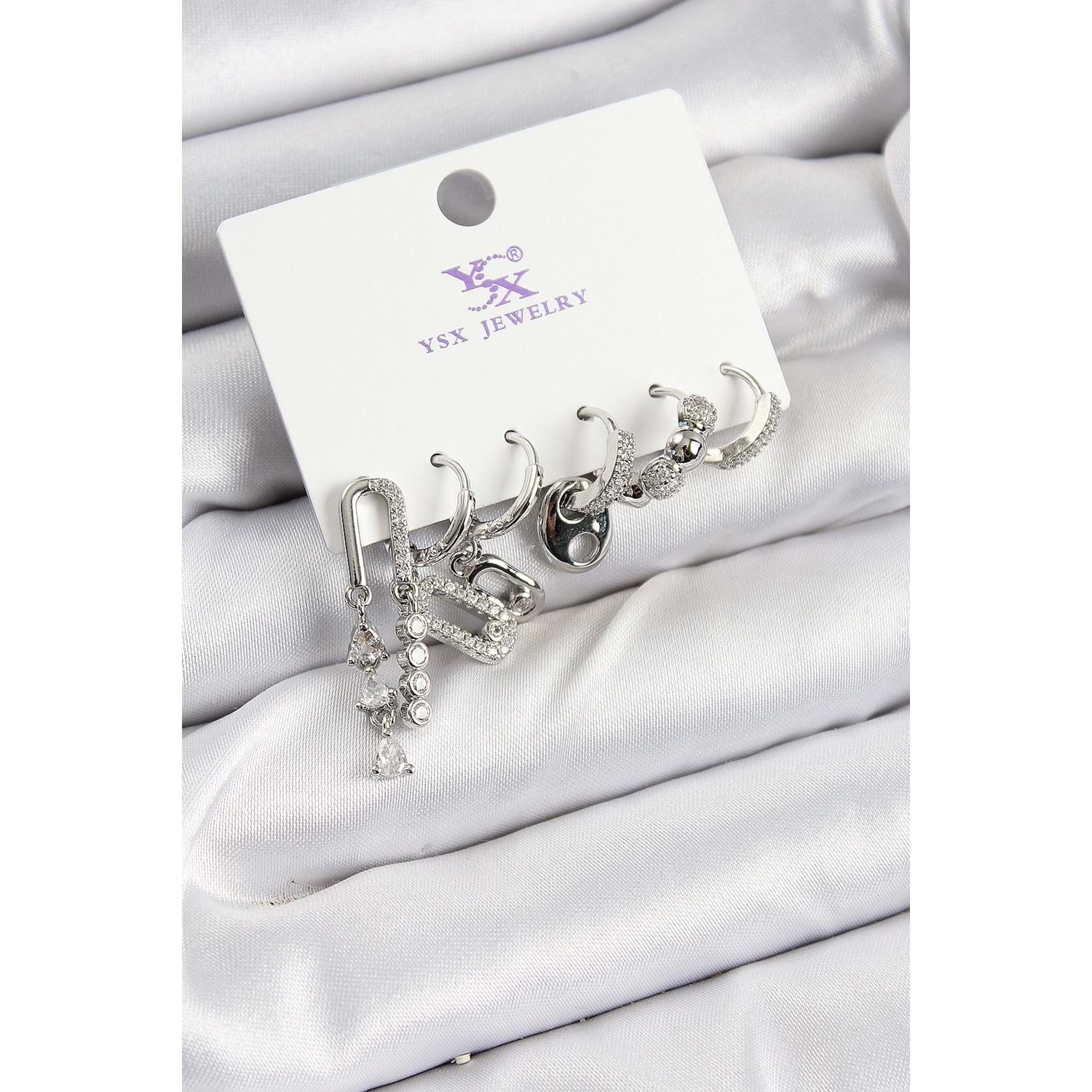 Pirinç Zİrkon Taşlı Dikdörtgen Model Gümüş Renk 3'lü Çift Kadın Küpe