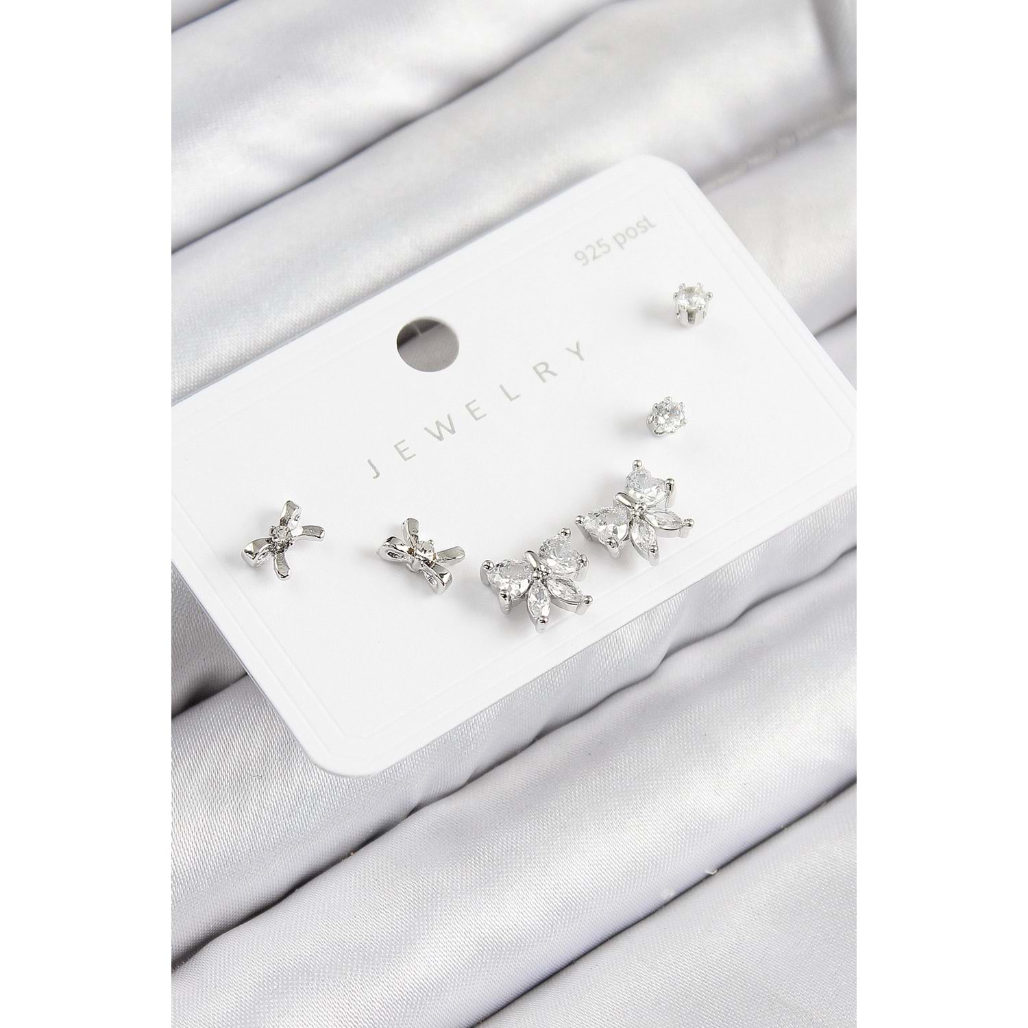 Pirinç Zirkon Taşlı Fiyonk Model Gümüş Renk 925 Ayar Gümüş Çivi Kadın Küpe Set
