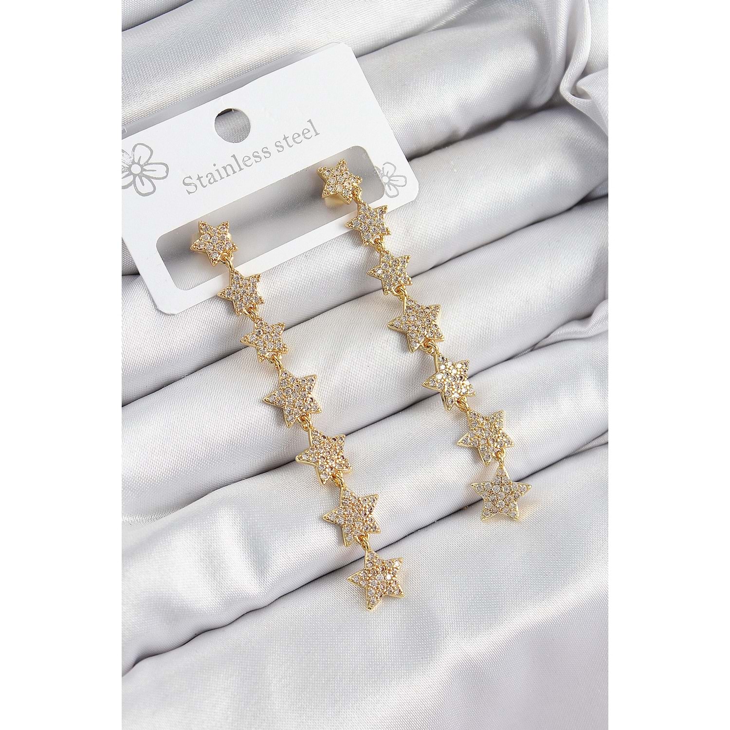 Pirinç Zirkon Taşlı Sallantılı Yıldız Model Gold Renk Kadın Küpe