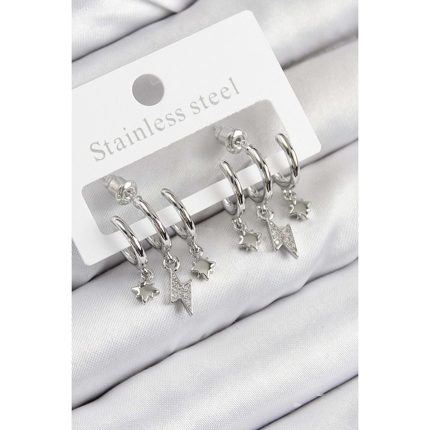Pirinç Zirkon Taşlı Şimşek Model Gümüş Renk Kadın Küpe